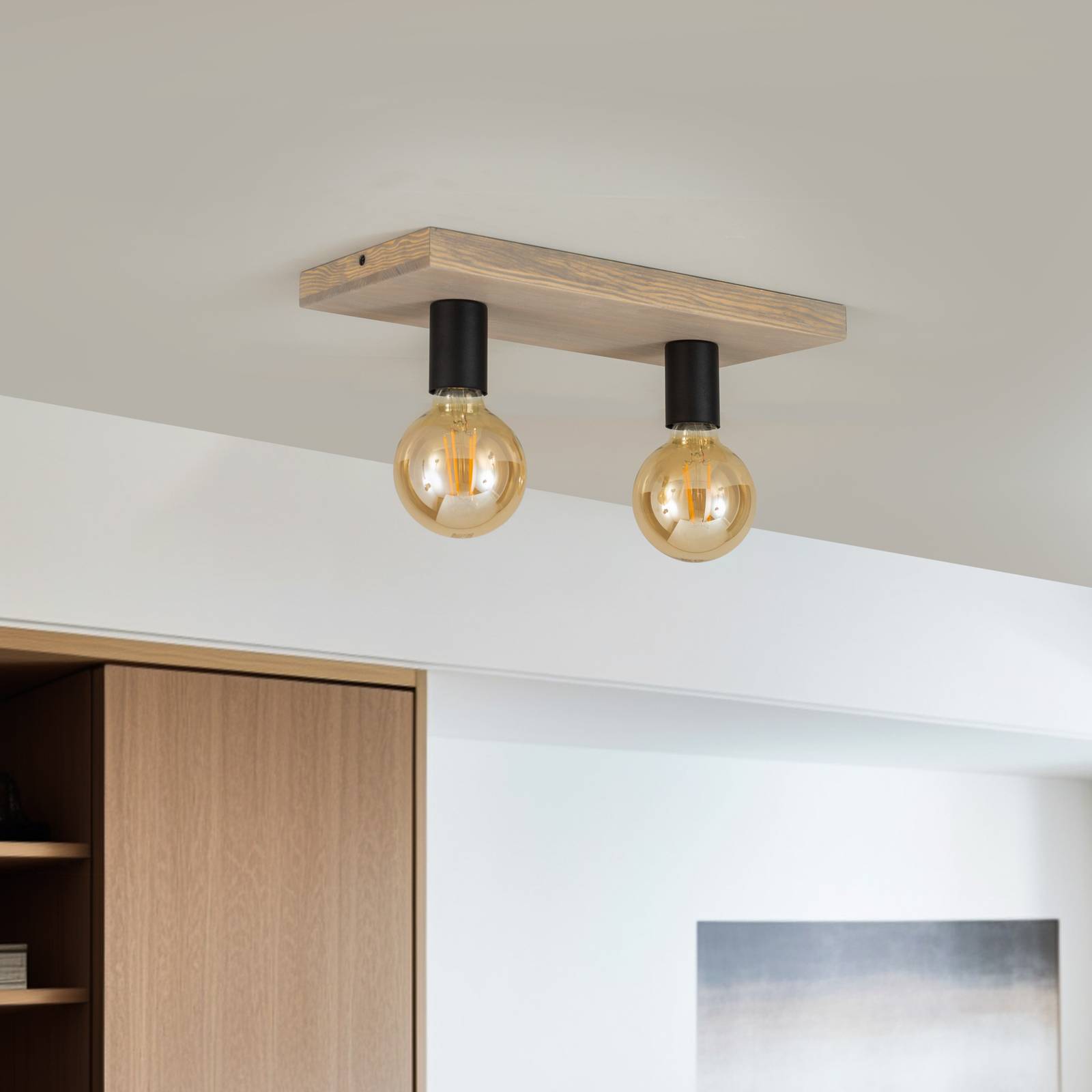 Envostar Stropní svítidlo Lobo 2fl. borovice šedá, Obývací pokoj / jídelna, Borovice mořená, kov, E27, 15W, P: 38 cm, L: 18 cm, K: 9.5cm