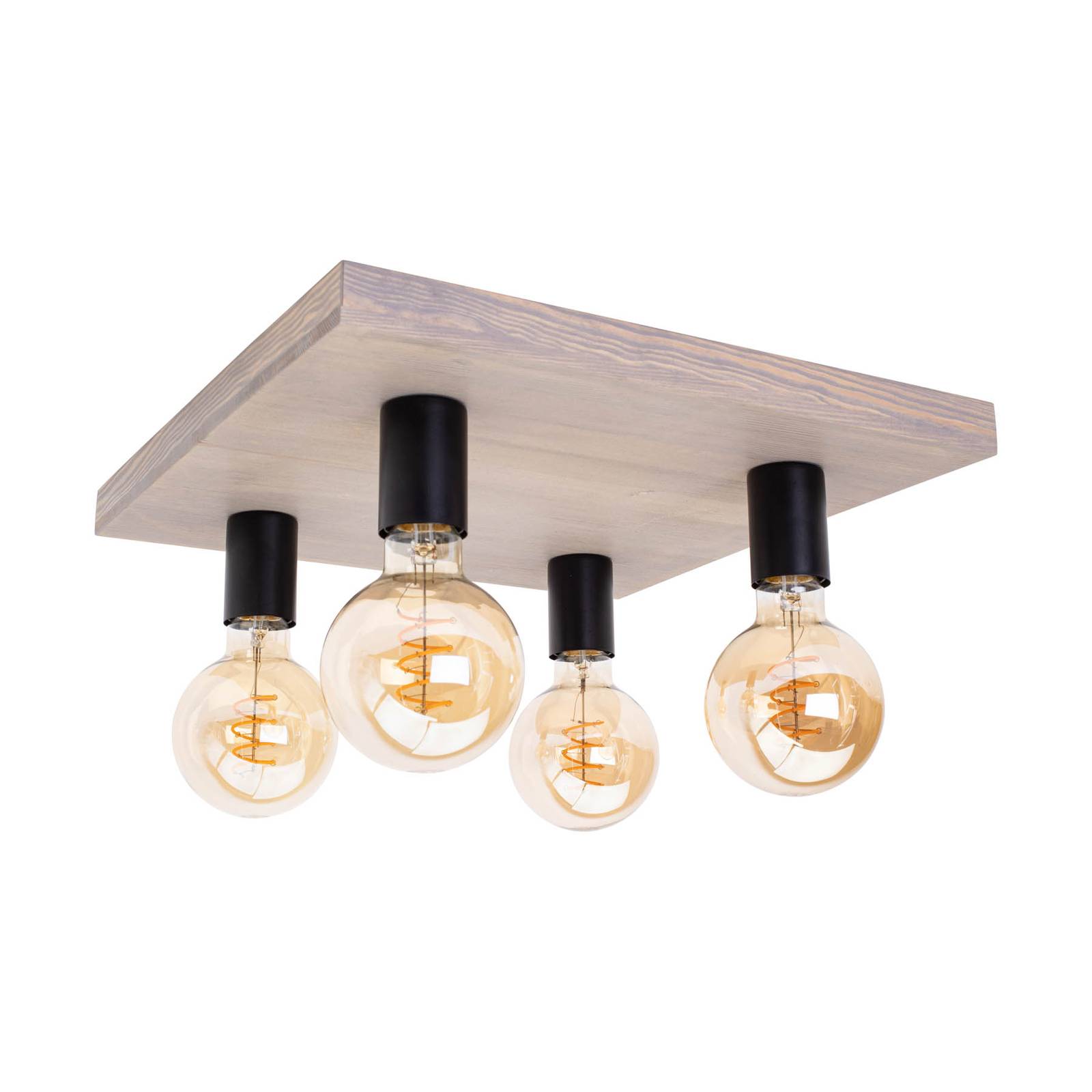 Envostar Stropní svítidlo Lobo 4fl. borovice šedá, Obývací pokoj / jídelna, Borovice mořená, kov, E27, 15W, P: 38 cm, L: 38 cm, K: 9.5cm