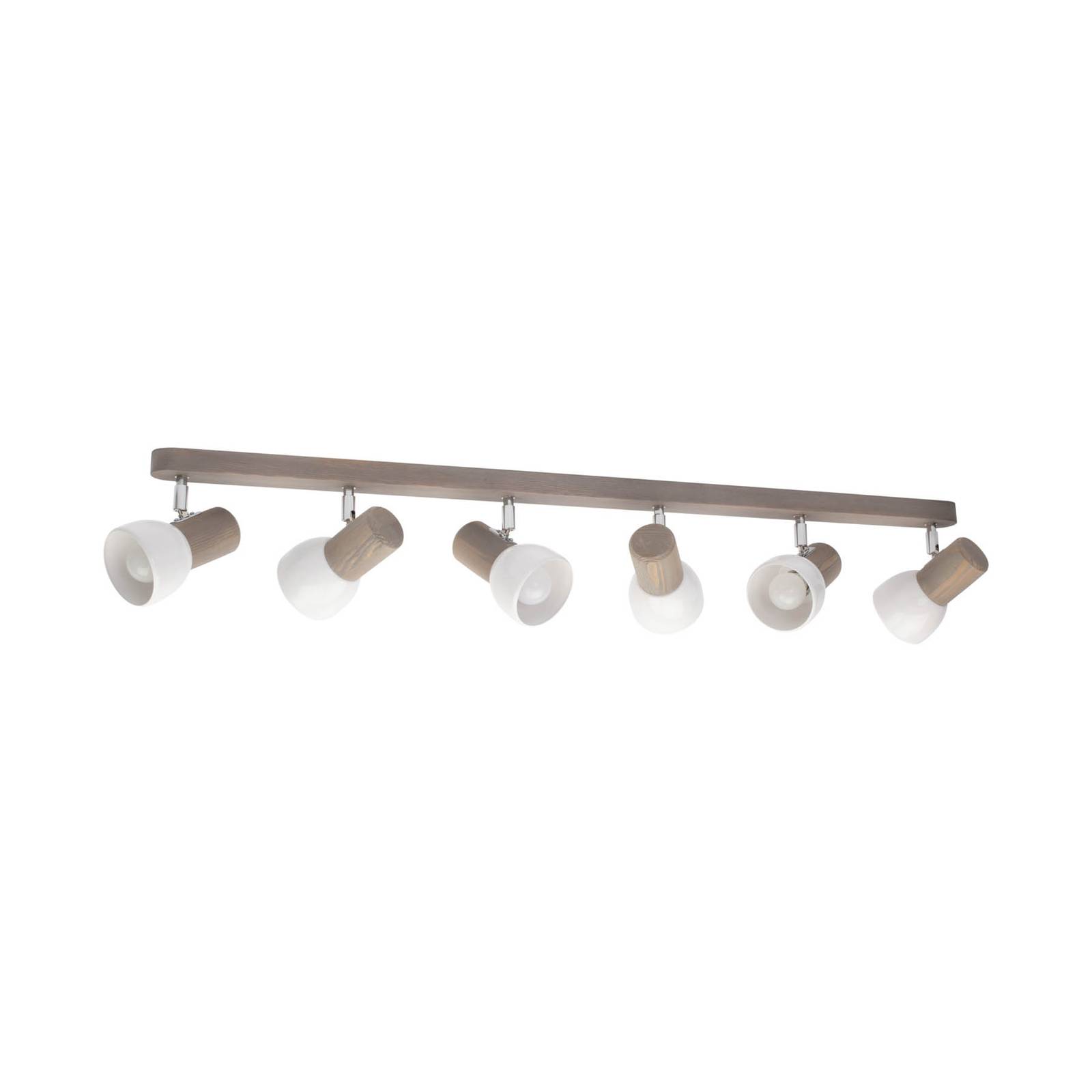 Envostar Nale stropní spot 6fl. borovicově šedá, Obývací pokoj / jídelna, Borovice mořená, kov, E27, 15W, P: 105 cm, L: 9 cm, K: 18cm
