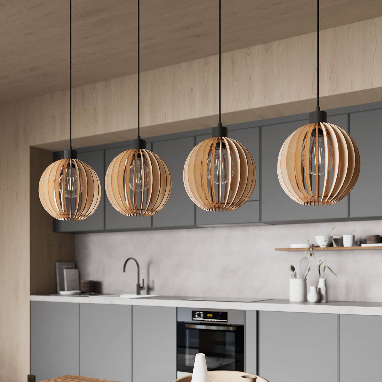 Envostar Závěsné svítidlo Clay, březová překližka, 4fl, Obývací pokoj / jídelna, Kov, textil, březová překližka, E27, 15W, P: 117 cm, L: 23 cm