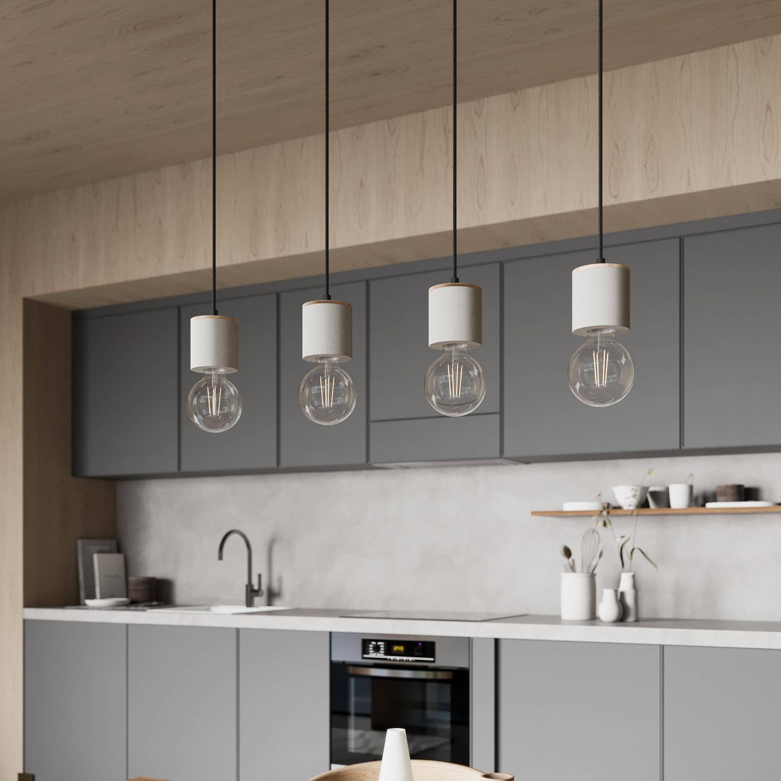 Envostar Závěsné svítidlo Jasper, 4 světla, lineární, Obývací pokoj / jídelna, Olejovaný dub, textil, beton, E27, 15W, P: 75 cm, L: 8 cm