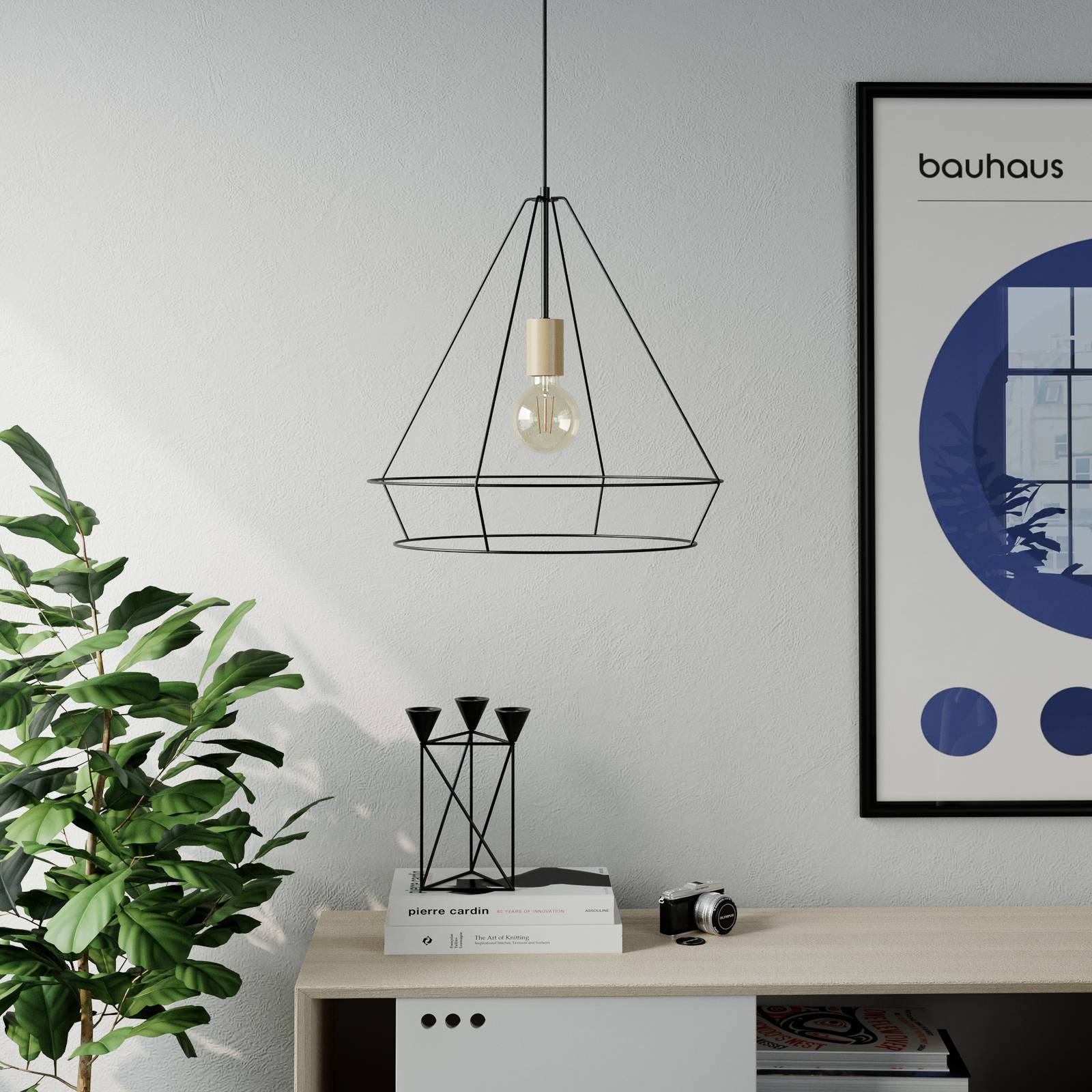 Envostar Otevřená závěsná lampa s kovovým stínidlem, hranatá, Obývací pokoj / jídelna, Kov, olejované dubové dřevo, E27, 15W, K: 46cm