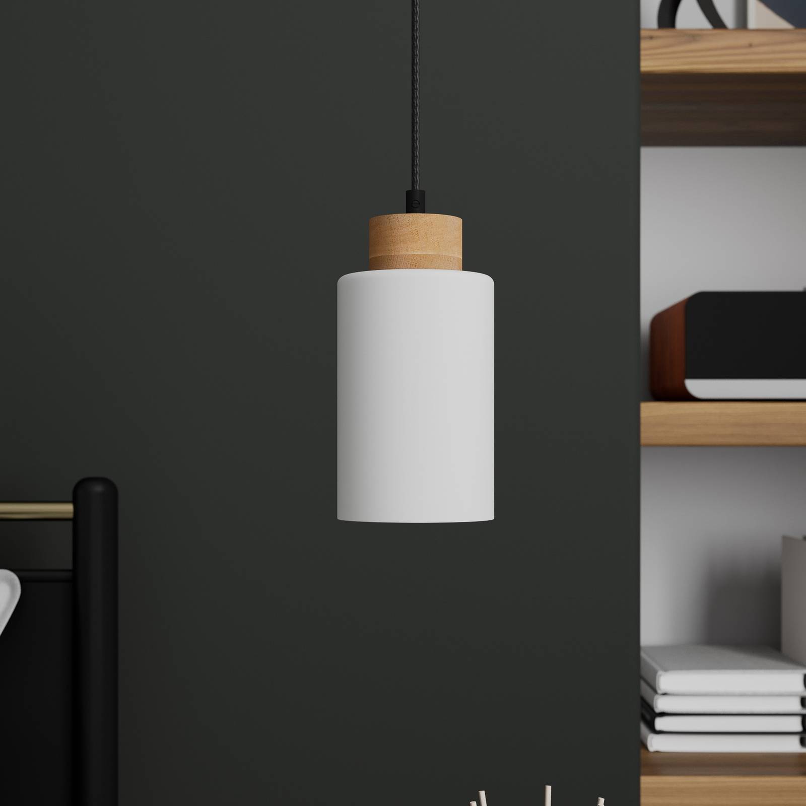 Envostar Závěsné svítidlo Talia, dub/bílá, 1fl, Obývací pokoj / jídelna, Kov, textil, olejovaný dub, sklo, E27, 15W