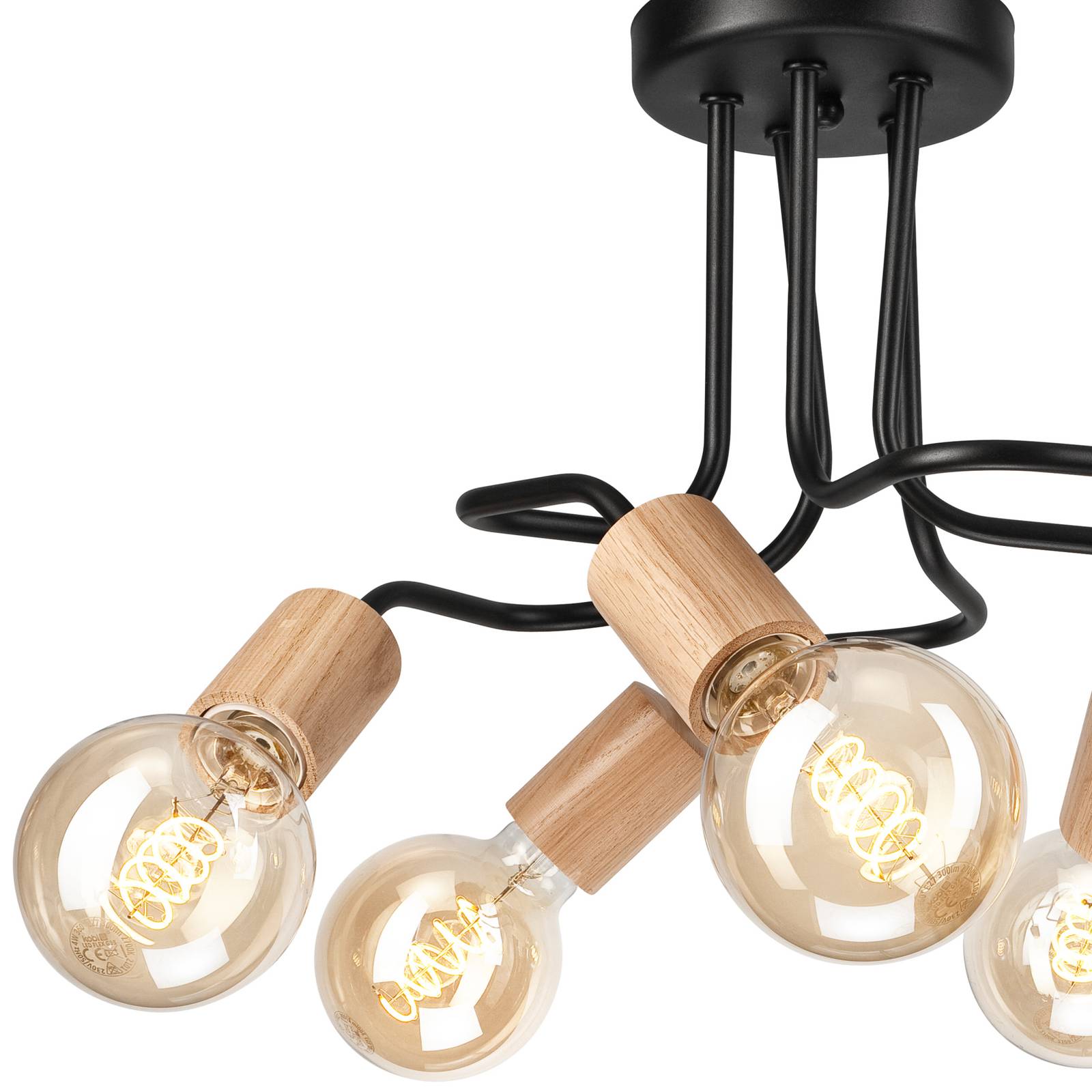 Envostar Joiy stropní 5panelový distribuovaný černá/dřevo, Obývací pokoj / jídelna, Ocel, dubové dřevo, E27, 60W, K: 26cm