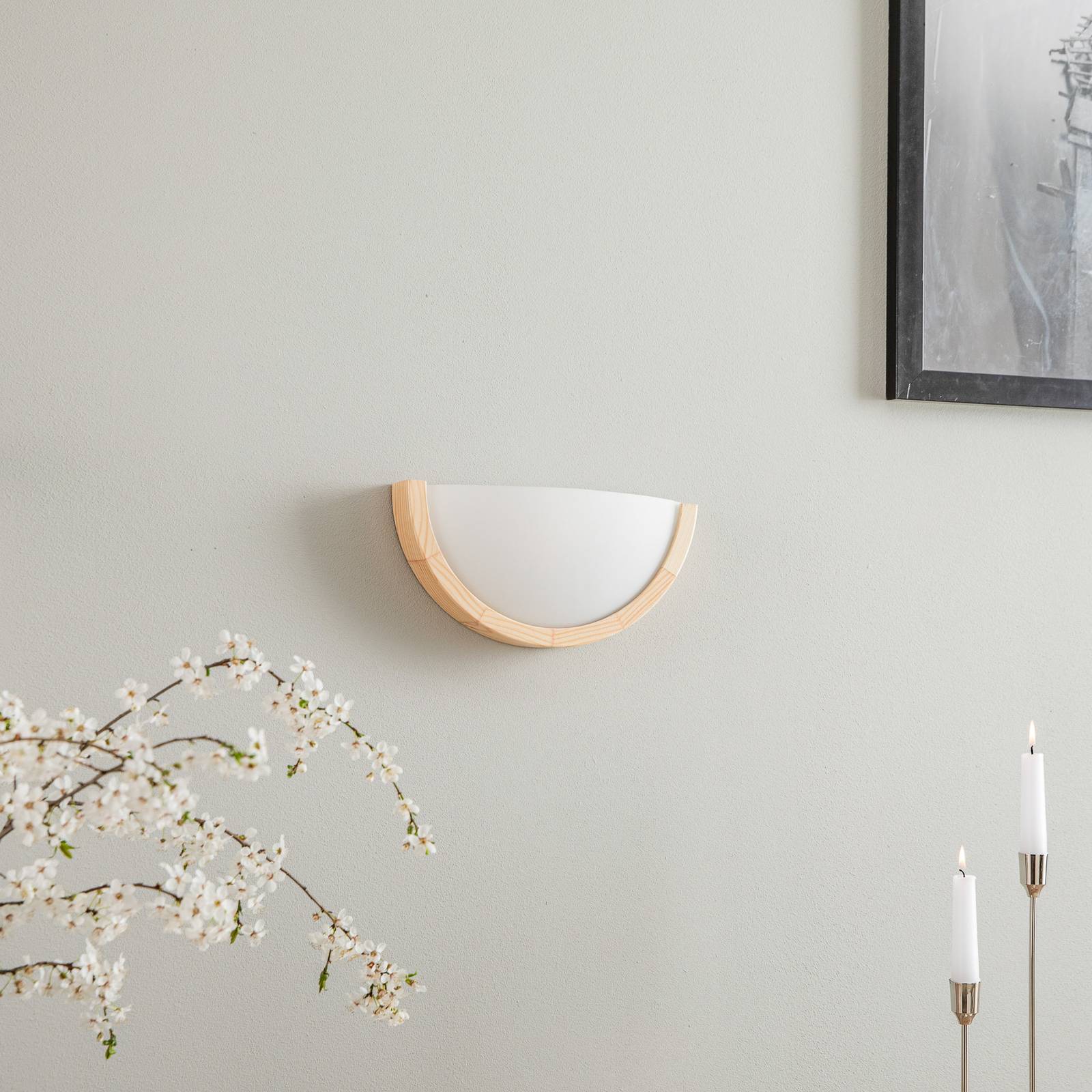 Envostar Kris nástěnné světlo, 27, 5cm borovice, Obývací pokoj / jídelna, dřevo, sklo, E27, 60W, L: 27.5 cm, K: 14cm