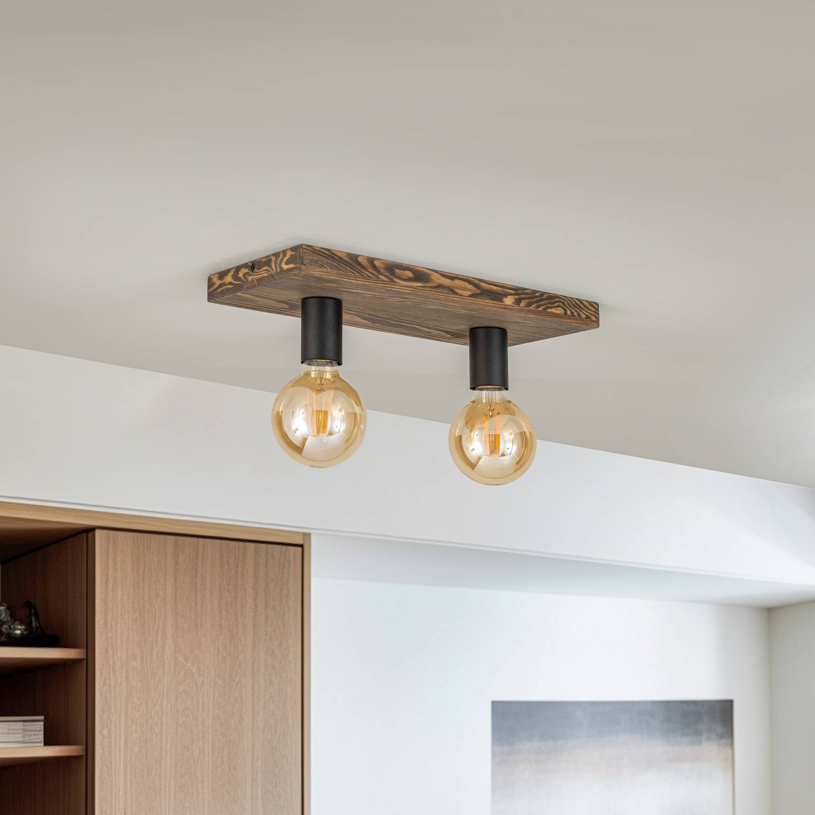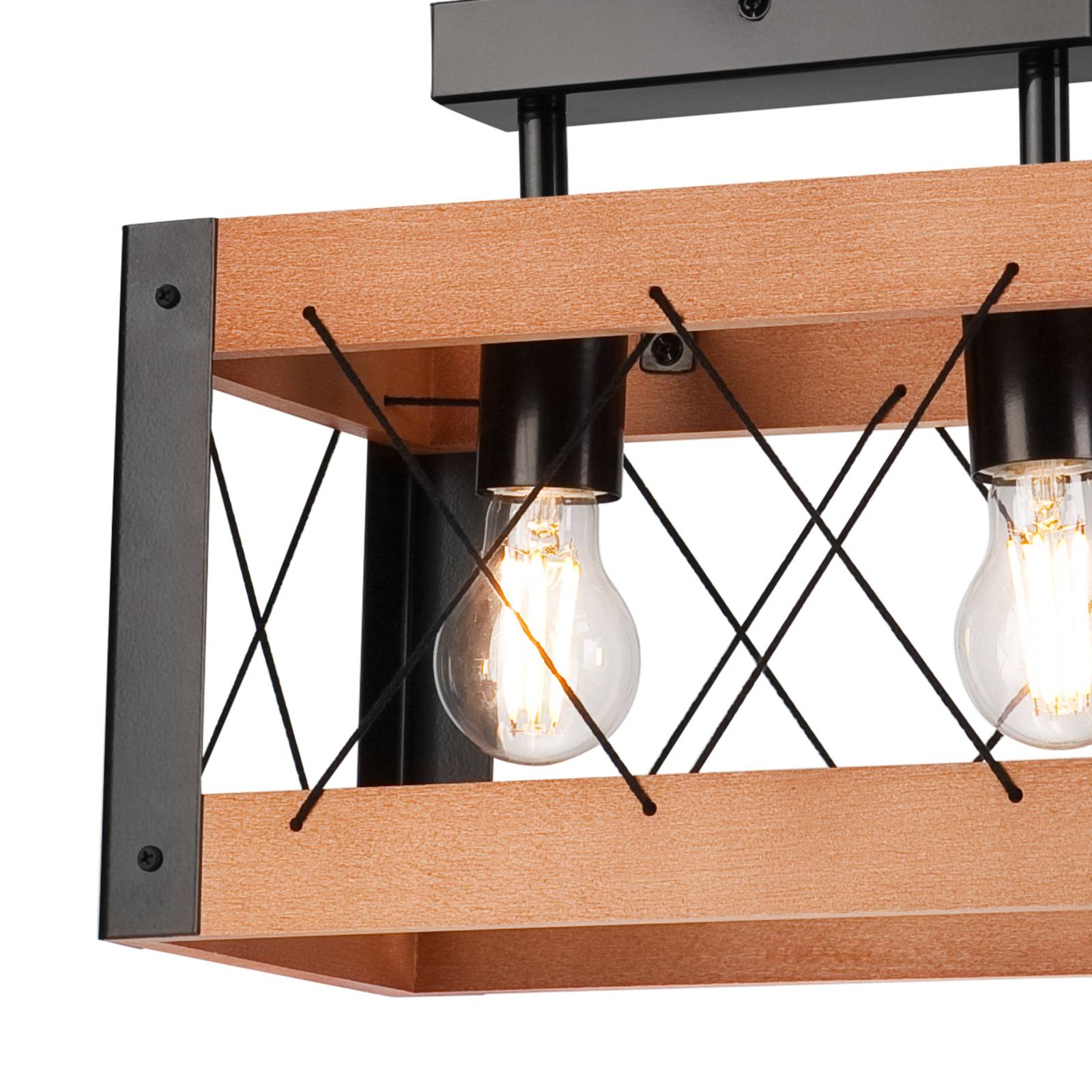 Envostar Stropní svítidlo Lobo 2fl. borovice ořech, Obývací pokoj / jídelna, Borovice mořená, kov, E27, 15W, P: 38 cm, L: 18 cm, K: 9.5cm