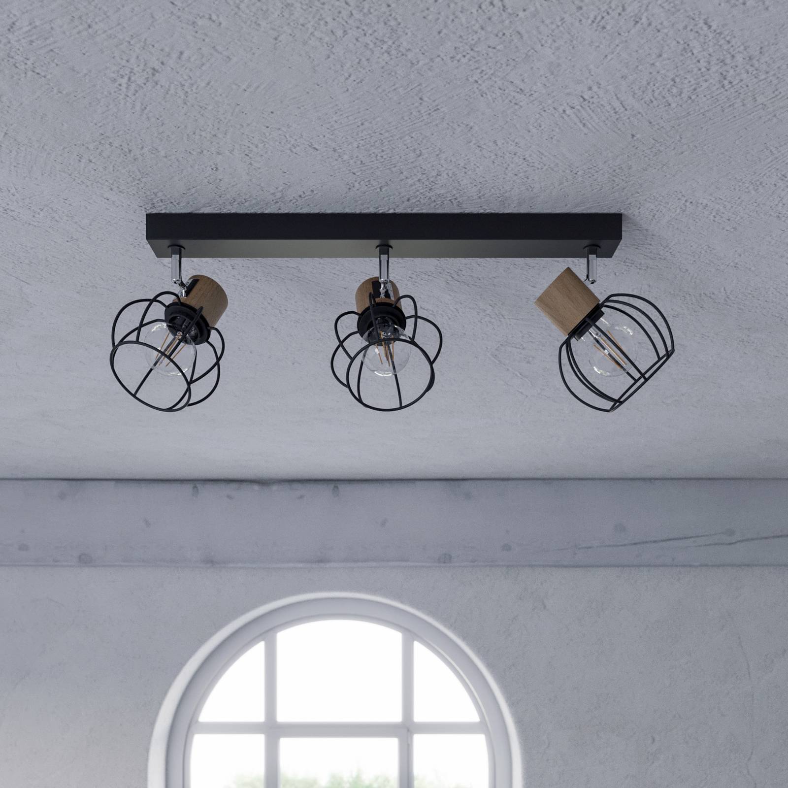 Envostar Merlo stropní světlo dub olej, 3 zdroje, Obývací pokoj / jídelna, dubové dřevo naolejované, kov, E27, 15W, P: 49 cm, L: 10 cm, K: 15cm