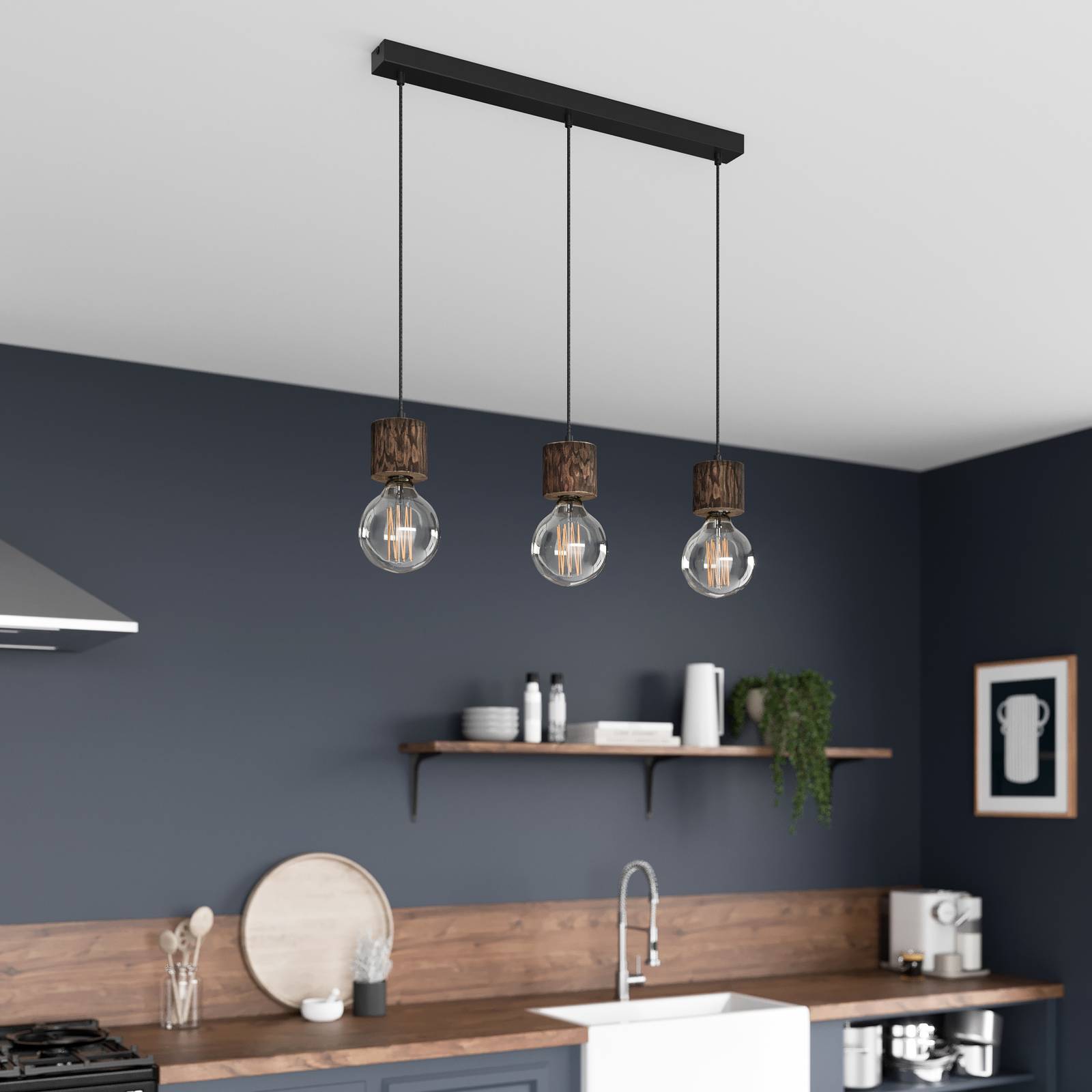Envostar Various závěsné 5 zdrojů borovice tmavá, Obývací pokoj / jídelna, kov, borové dřevo mořené, E27, 15W, P: 115 cm, L: 35 cm