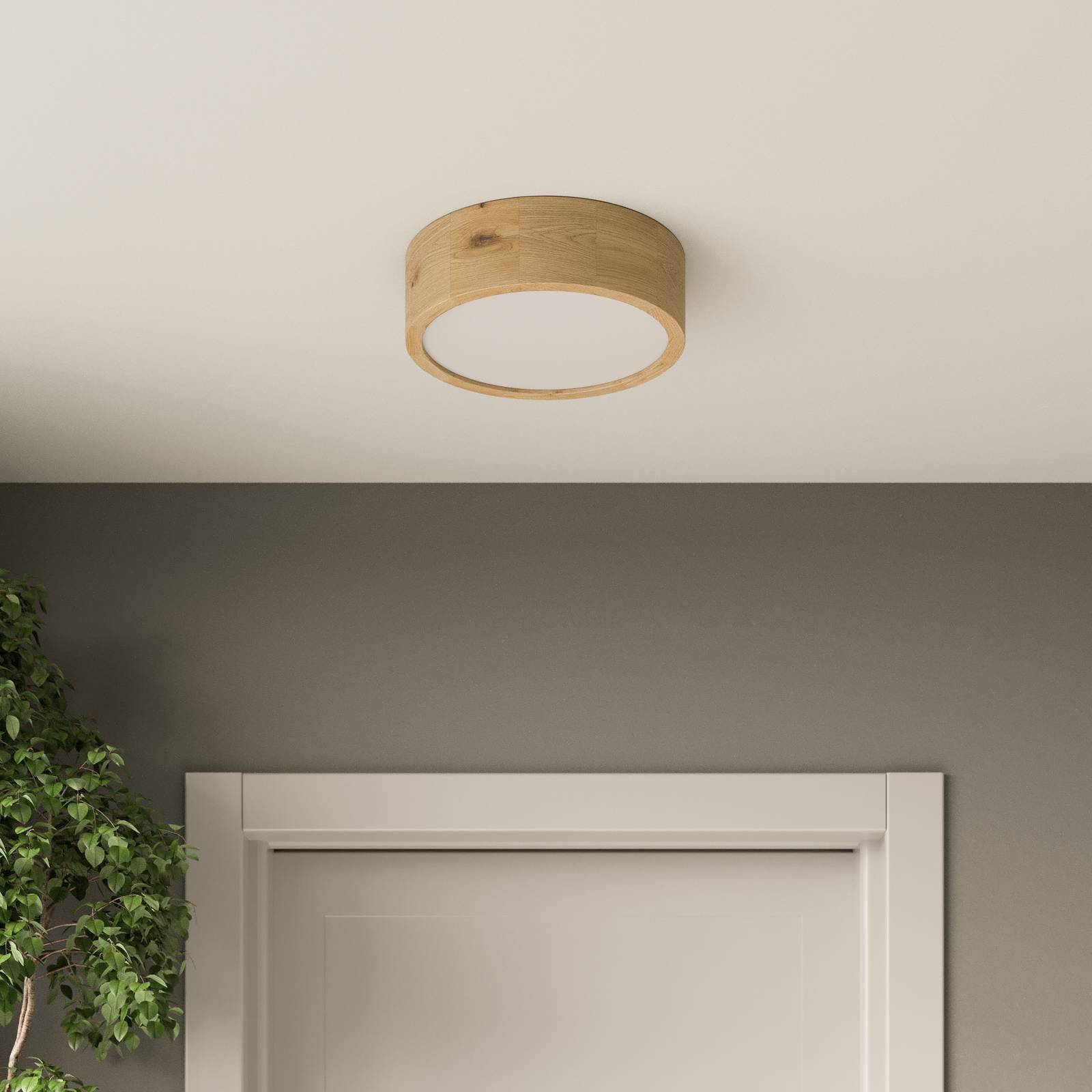 Envostar Kerio stropní světlo, Ø27cm, dub přírodní, Obývací pokoj / jídelna, dřevo, sklo, E27, 15W, K: 8cm