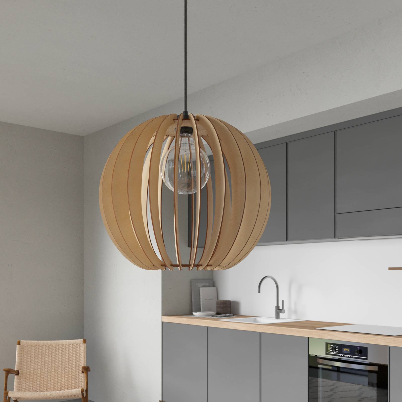 Envostar Hliněná závěsná lampa březová překližka Ø 40 cm, Obývací pokoj / jídelna, Kov, textil, březová překližka, E27, 15W