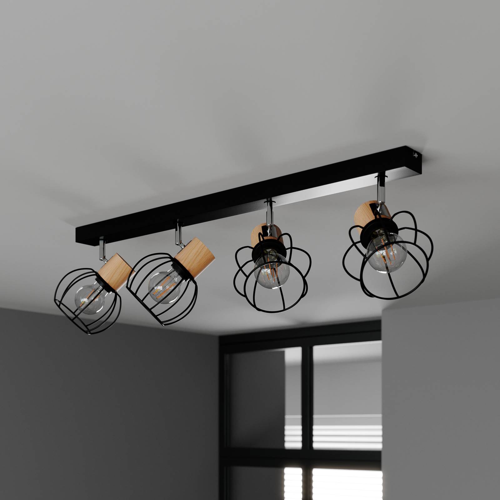 Envostar Stropní svítidlo Fence, kov/dřevo, 4 světla., Chodba, Kov, olejované dubové dřevo, E27, 15W, P: 83 cm, L: 13 cm, K: 20cm