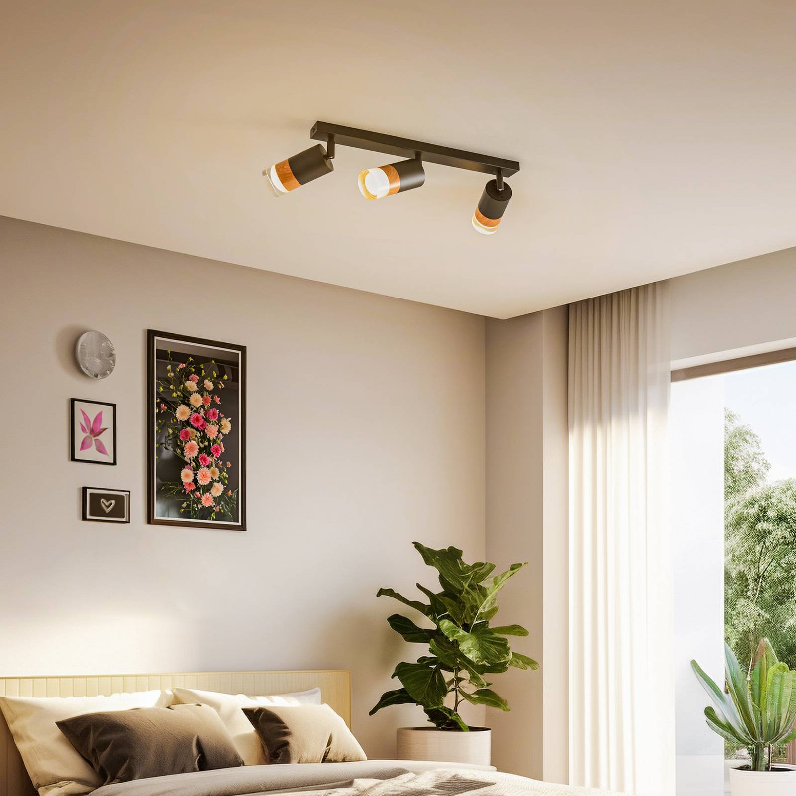 Envostar Fida stropní bodovka, tři zdroje, černá, Obývací pokoj / jídelna, železo, dřevo, GU10, 10W, P: 45 cm, L: 6 cm, K: 20cm