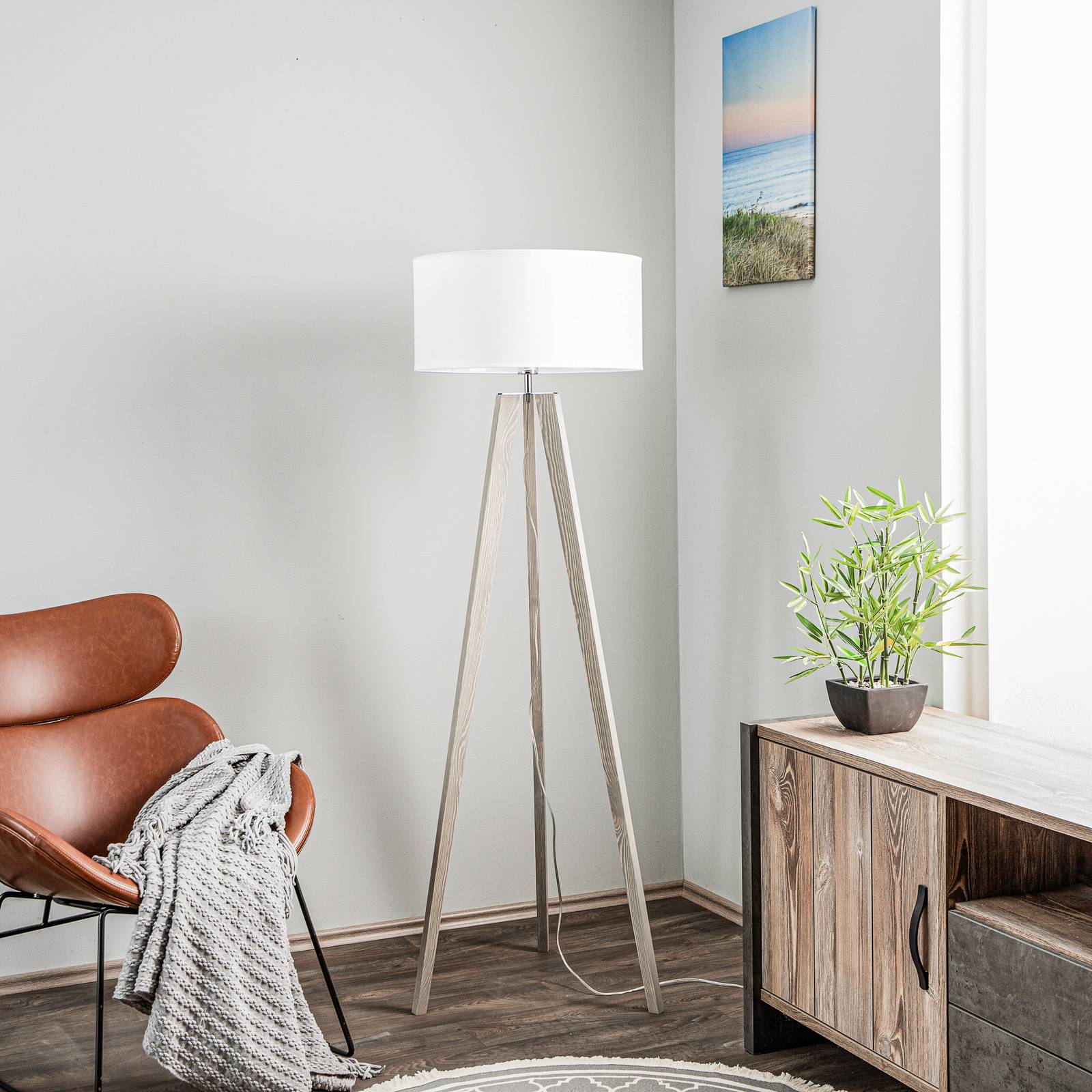 Envostar Junus stativová stojací lampa borovice šedá, Obývací pokoj / jídelna, Borovice mořená, bavlna s biologicky rozložitelnou fólií, E27, 15W, K: 160cm