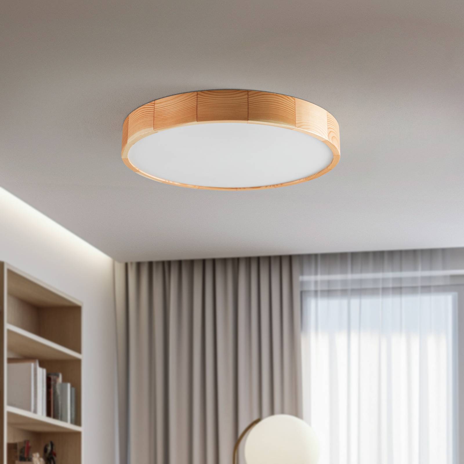 Envostar Kerio stropní světlo, Ø 57, 5cm, borovice, Obývací pokoj / jídelna, dřevo, sklo, E27, 15W, K: 8cm