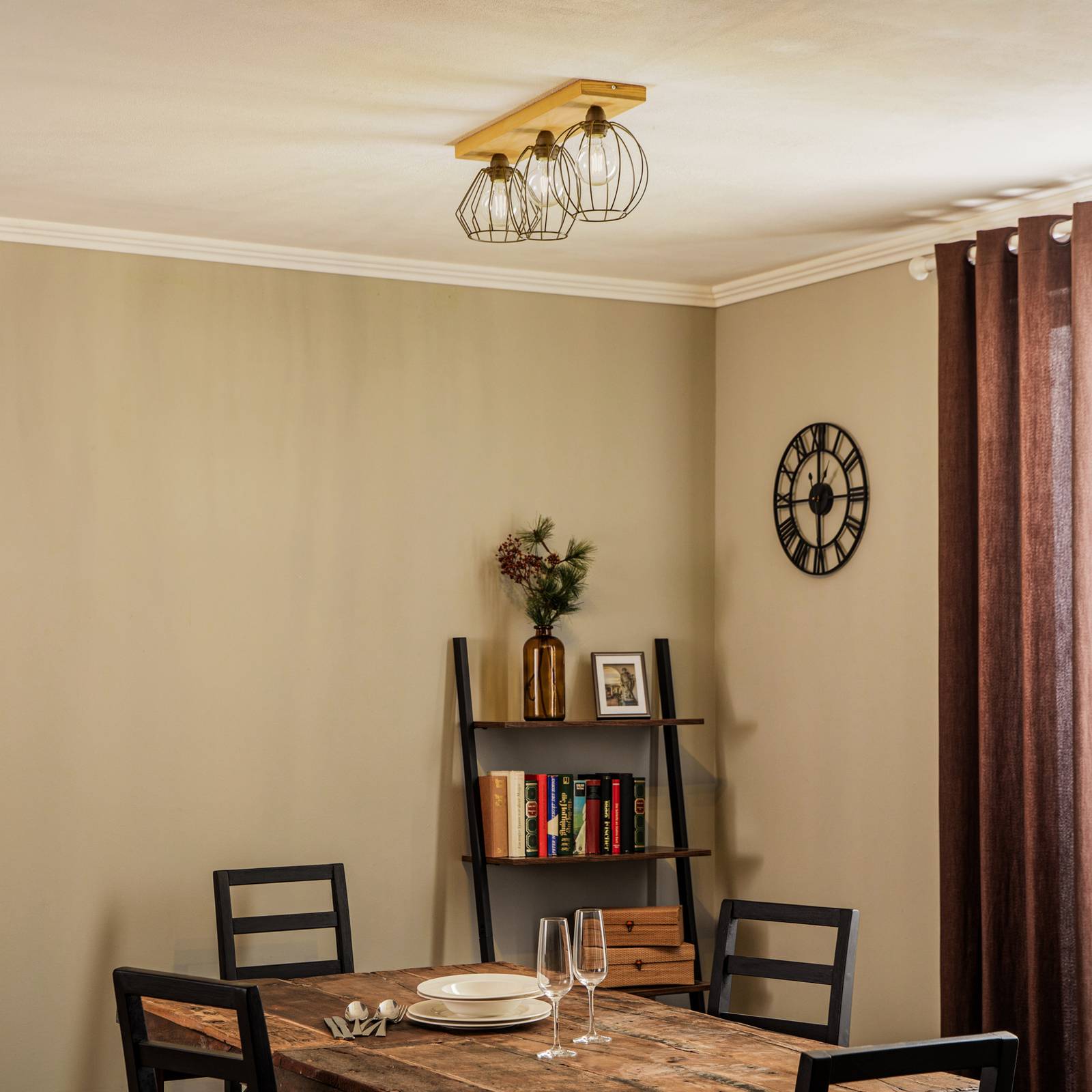 Envostar Various stropní 3 zdroje borové přírodní, Obývací pokoj / jídelna, kov, borové dřevo mořené, E27, 15W, P: 59 cm, L: 19 cm, K: 23.5cm
