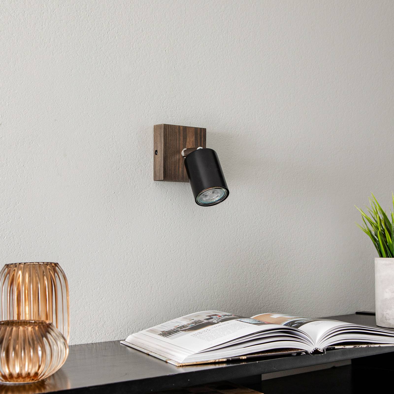 Envostar Alara wall spot 1fl. borovice ořech, Obývací pokoj / jídelna, Borovice mořená, kov, GU10, 5W, L: 9 cm, K: 9cm
