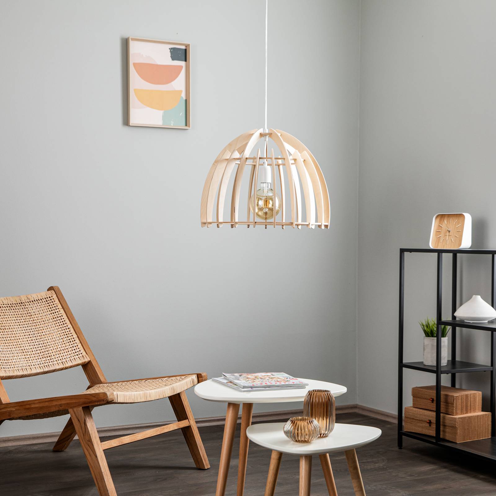 Envostar Lohr závěsné světlo dřevo, půlkruh Ø 50cm, Obývací pokoj / jídelna, dřevo, kov, E27, 15W