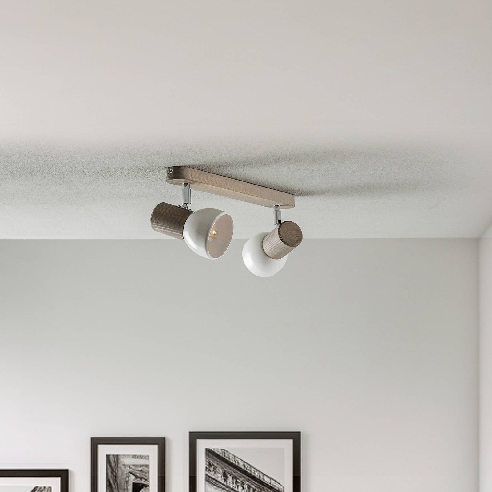 Envostar Nale stropní spot 2fl. borovicově šedá, Obývací pokoj / jídelna, Borovice mořená, kov, E27, 15W, P: 45 cm, L: 9 cm, K: 18cm
