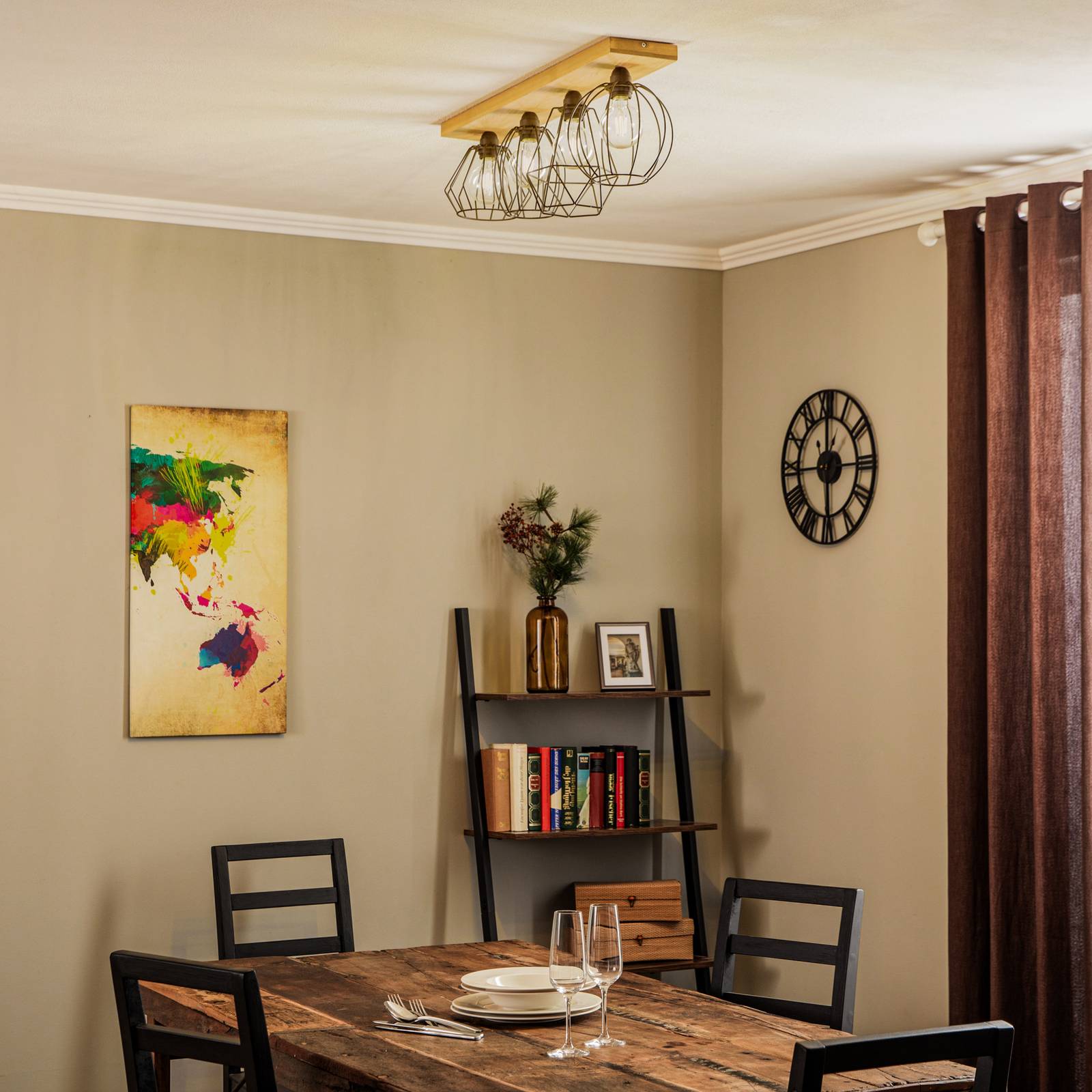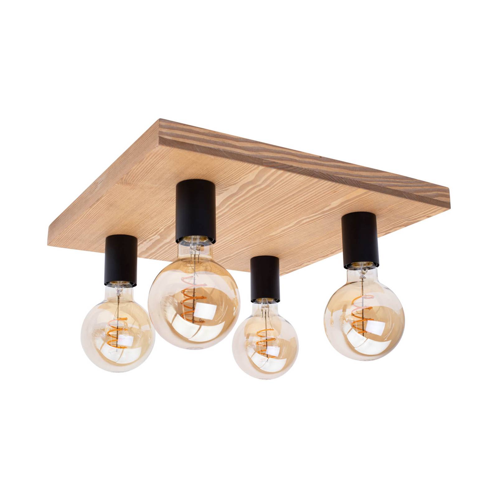 Envostar Various stropní 4 zdroje borové přírodní, Obývací pokoj / jídelna, kov, borové dřevo mořené, E27, 15W, P: 75.6 cm, L: 19 cm, K: 23.5cm