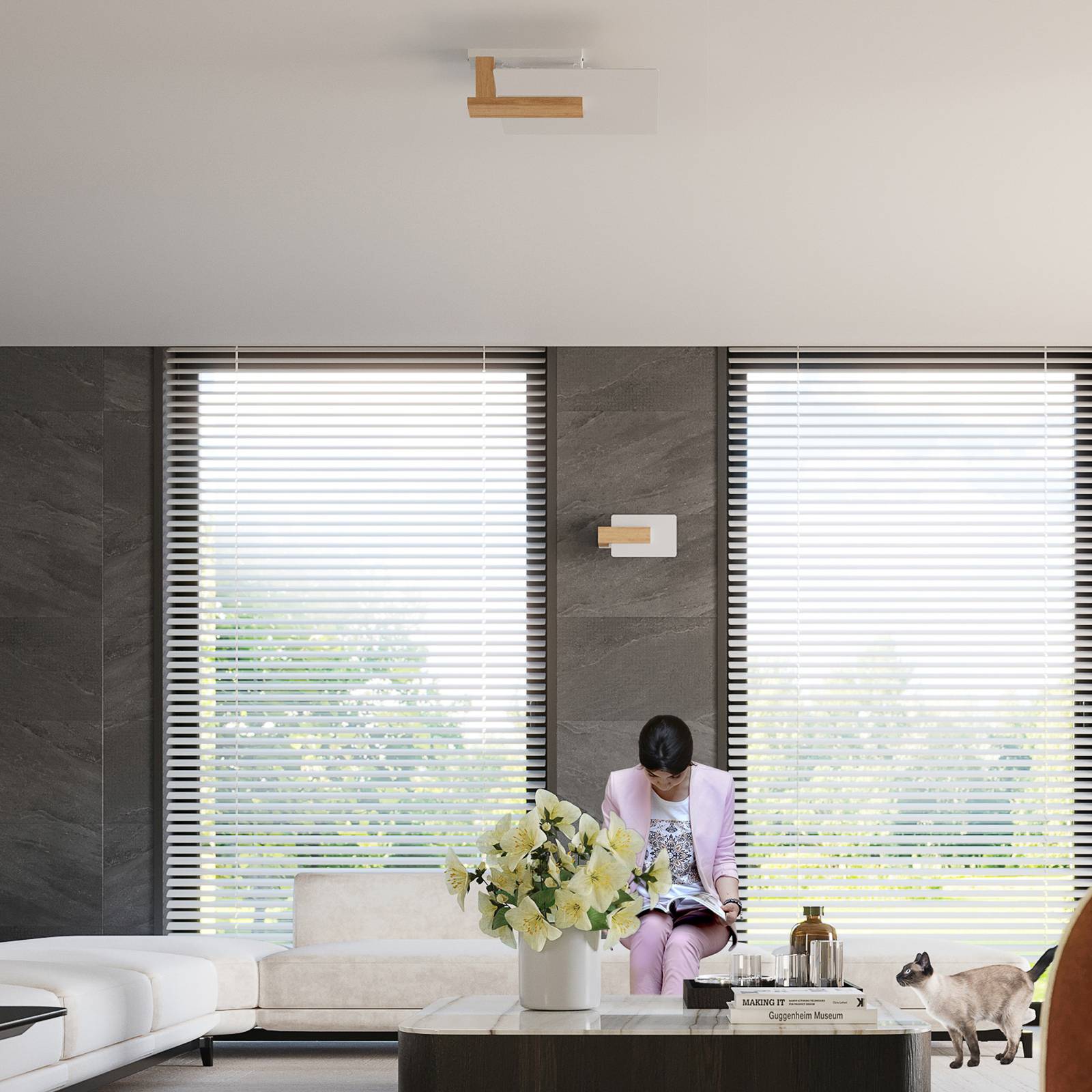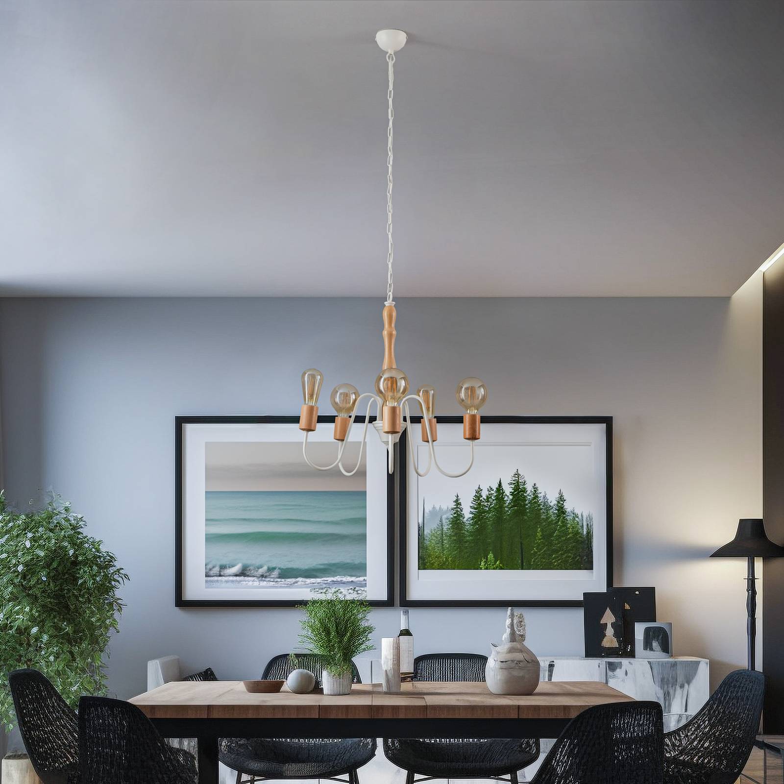 Envostar Joiy lustr, 5 zdrojů, bílá, Obývací pokoj / jídelna, železo, dřevo, E27, 60W