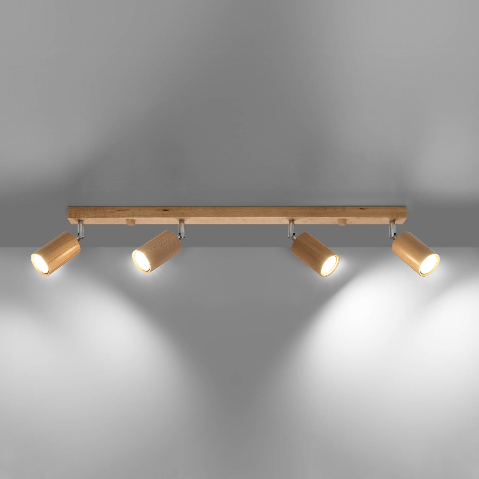 Envostar Peach Puff stropní bodovka dřevo válec 4x, Obývací pokoj / jídelna, dřevo, GU10, 10W, P: 80 cm, K: 20cm