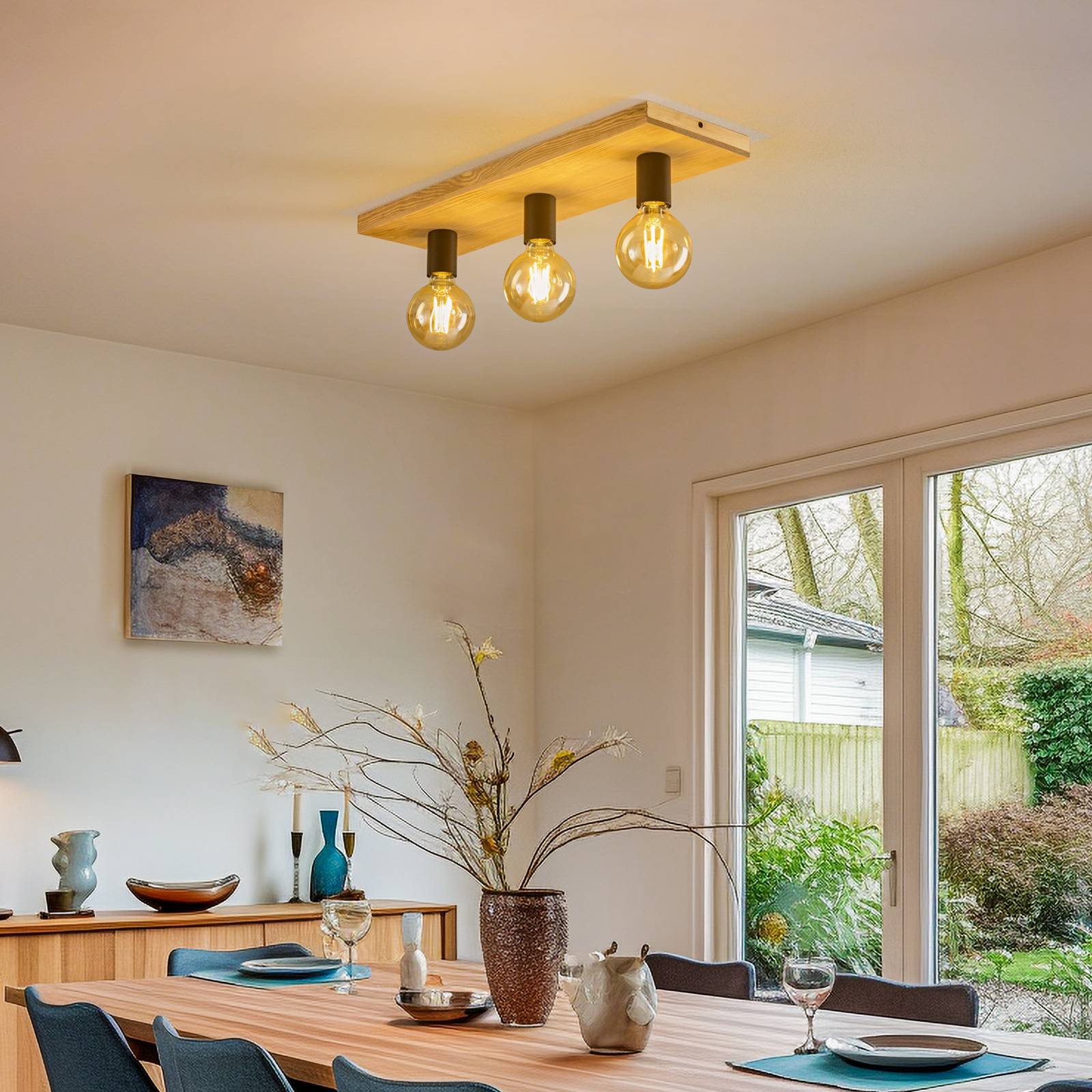 Envostar Stropní svítidlo Lobo 3 světla borovice hnědá, Obývací pokoj / jídelna, Borovice mořená, kov, E27, 15W, P: 58 cm, L: 18 cm, K: 9.5cm