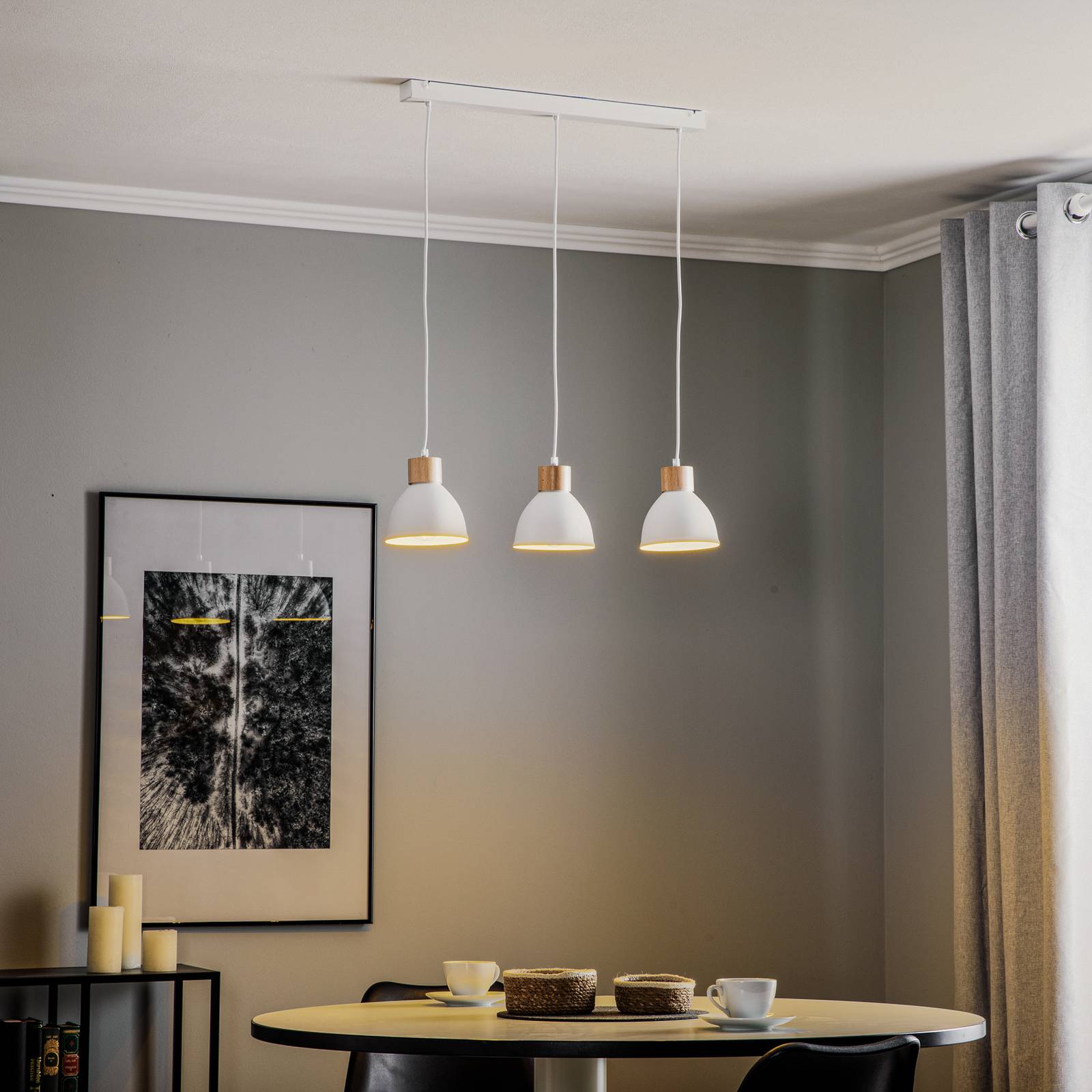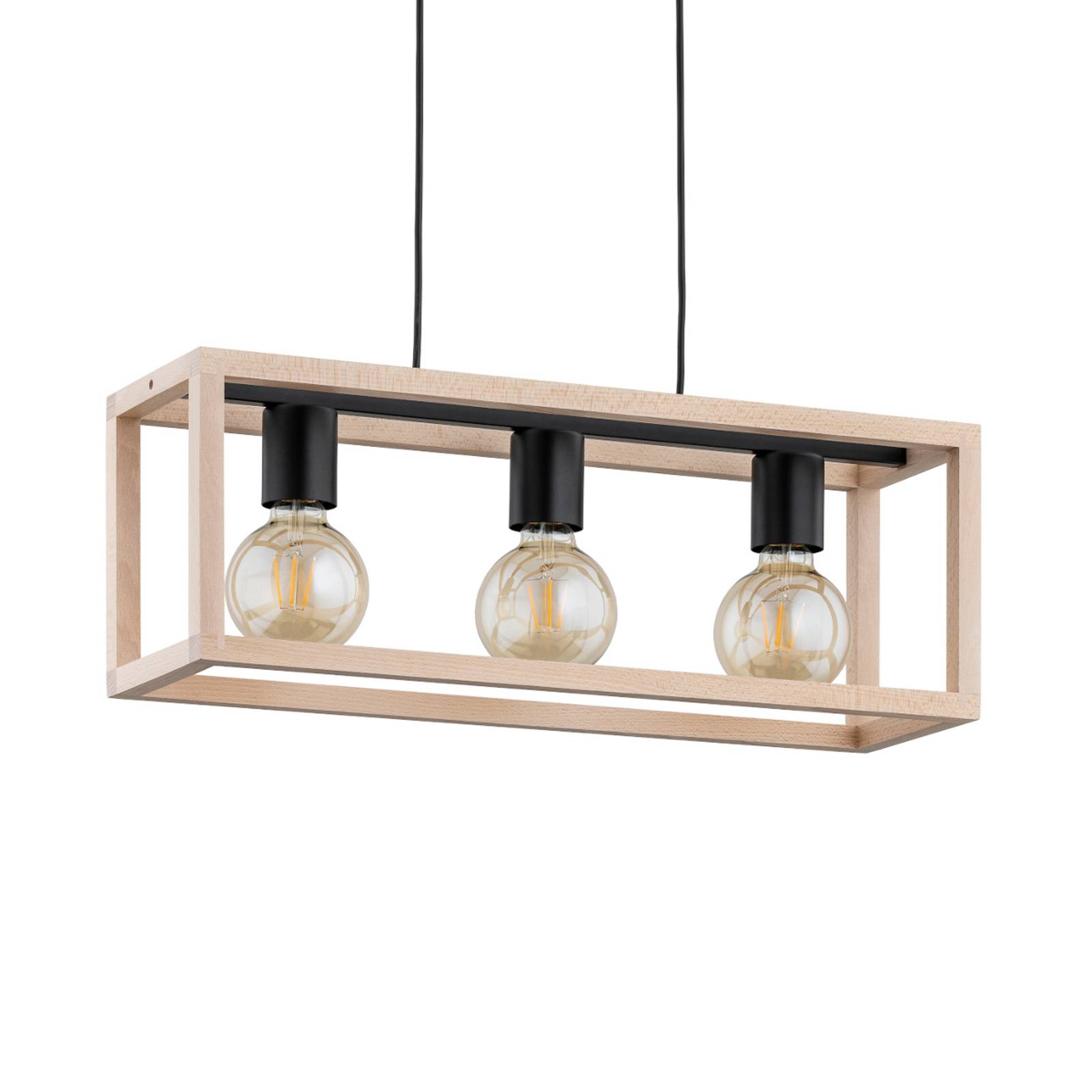 Envostar Závěsné svítidlo Tira, třísvětelné, bílé, Obývací pokoj / jídelna, Ocel, bukové dřevo, E27, 60W, P: 70 cm, L: 15 cm