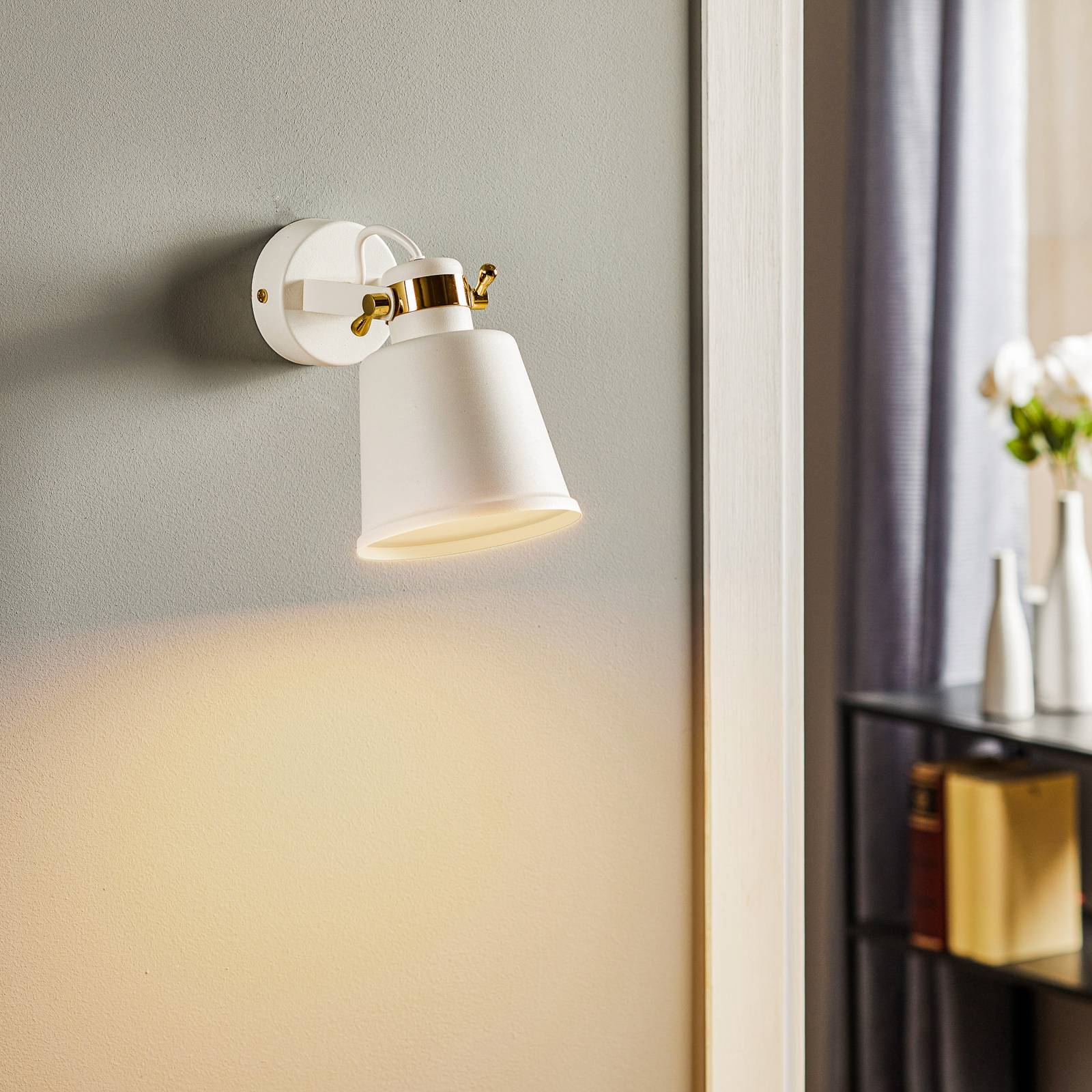 Euluna Nástěnný reflektor Kerava, jeden zdroj, bílý/mosaz, Obývací pokoj / jídelna, ocel, E27, 15W, L: 12 cm, K: 16cm