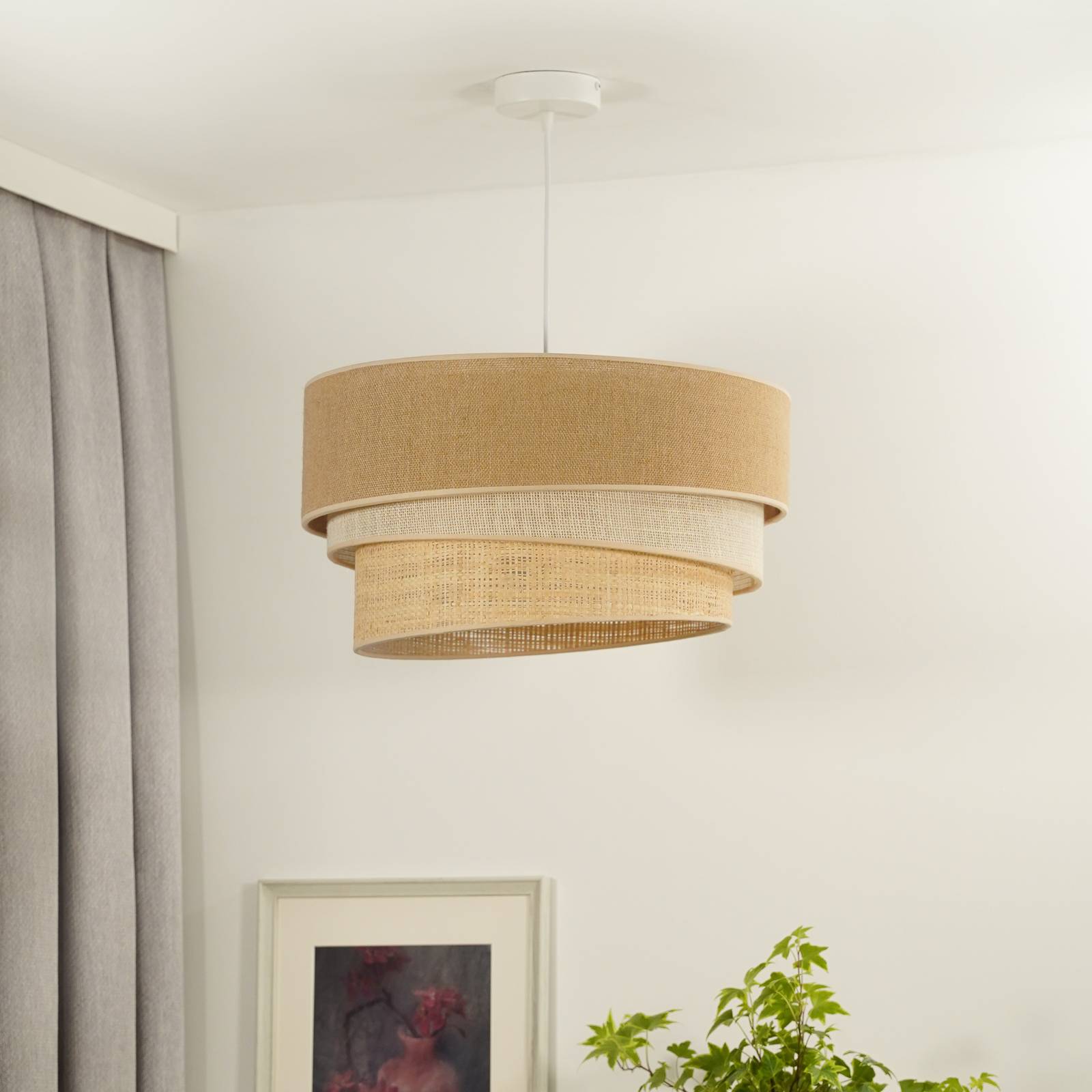 Euluna Závěsná lampa Trio Juta, přírodní hnědá/bílá/rafie, Ø 45 cm, Obývací pokoj / jídelna, Jutový textil, rafiové vlákno, E27, 15W, K: 25cm