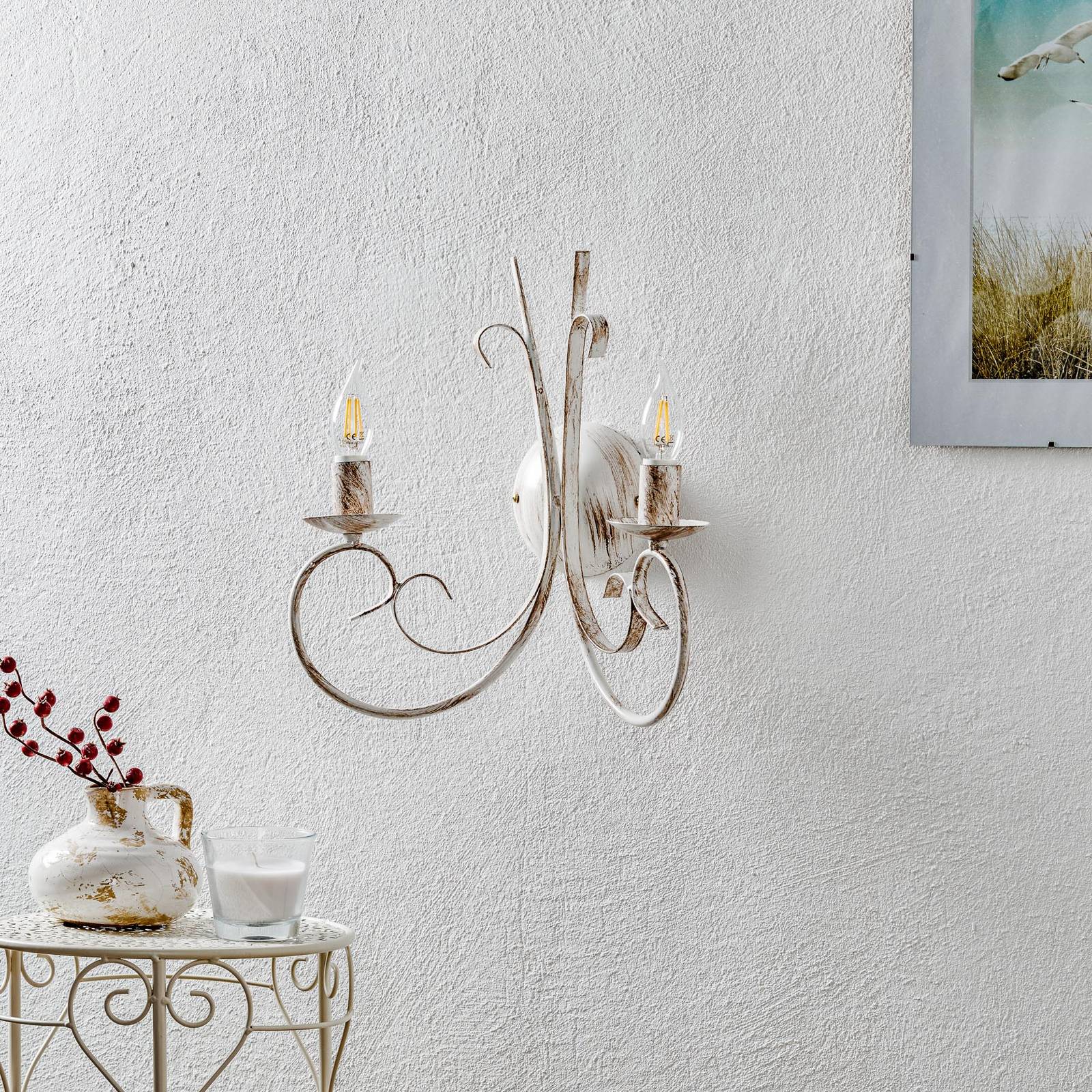 ONLI Nástěnné světlo Pompei, pochybné, bílá antická, Obývací pokoj / jídelna, železo, E14, 6W, L: 35 cm, K: 40cm