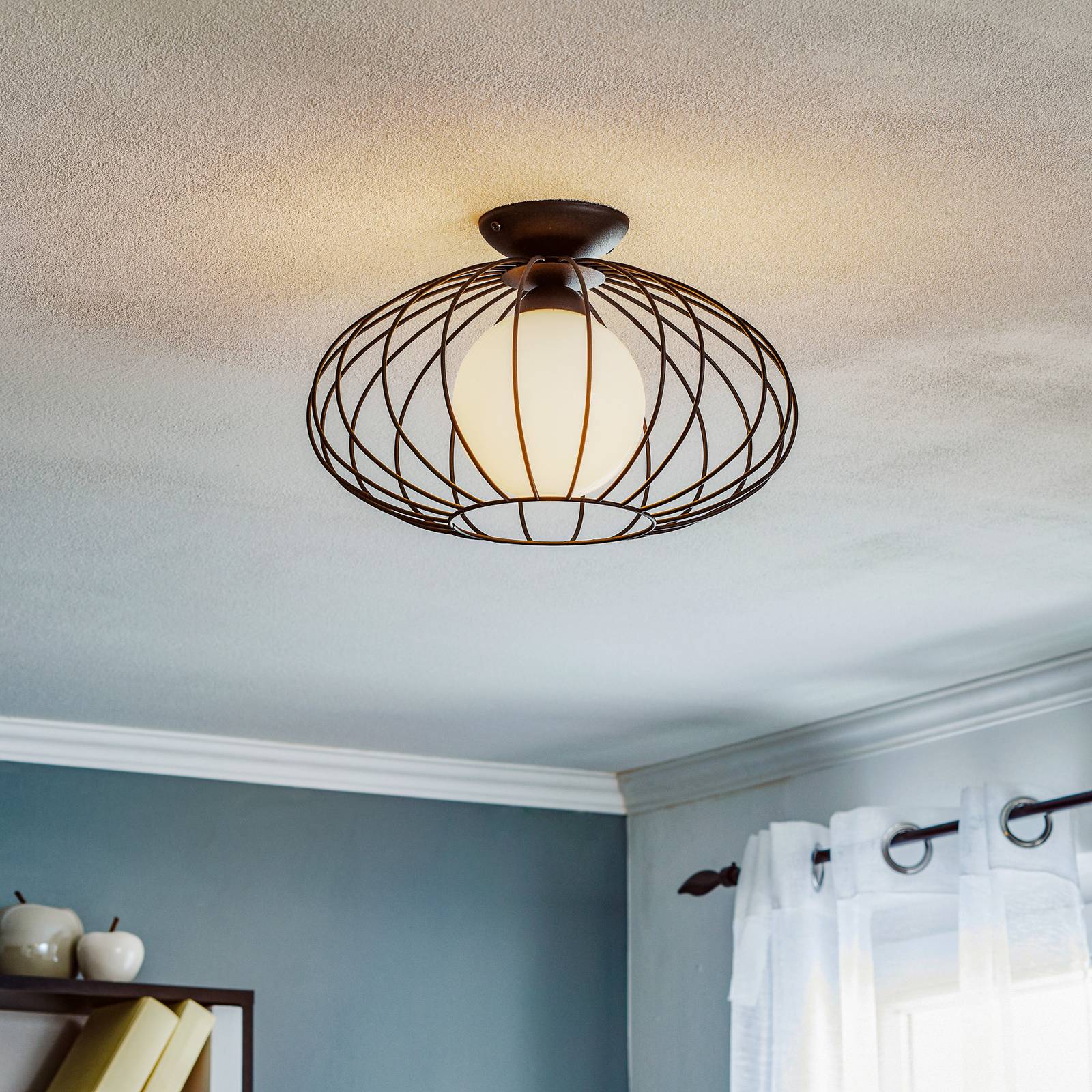 Eko-Light Stropní světlo Kronos, klec černá, 1 opálové koule, Obývací pokoj / jídelna, ocel, sklo, E14, 40W, K: 22cm