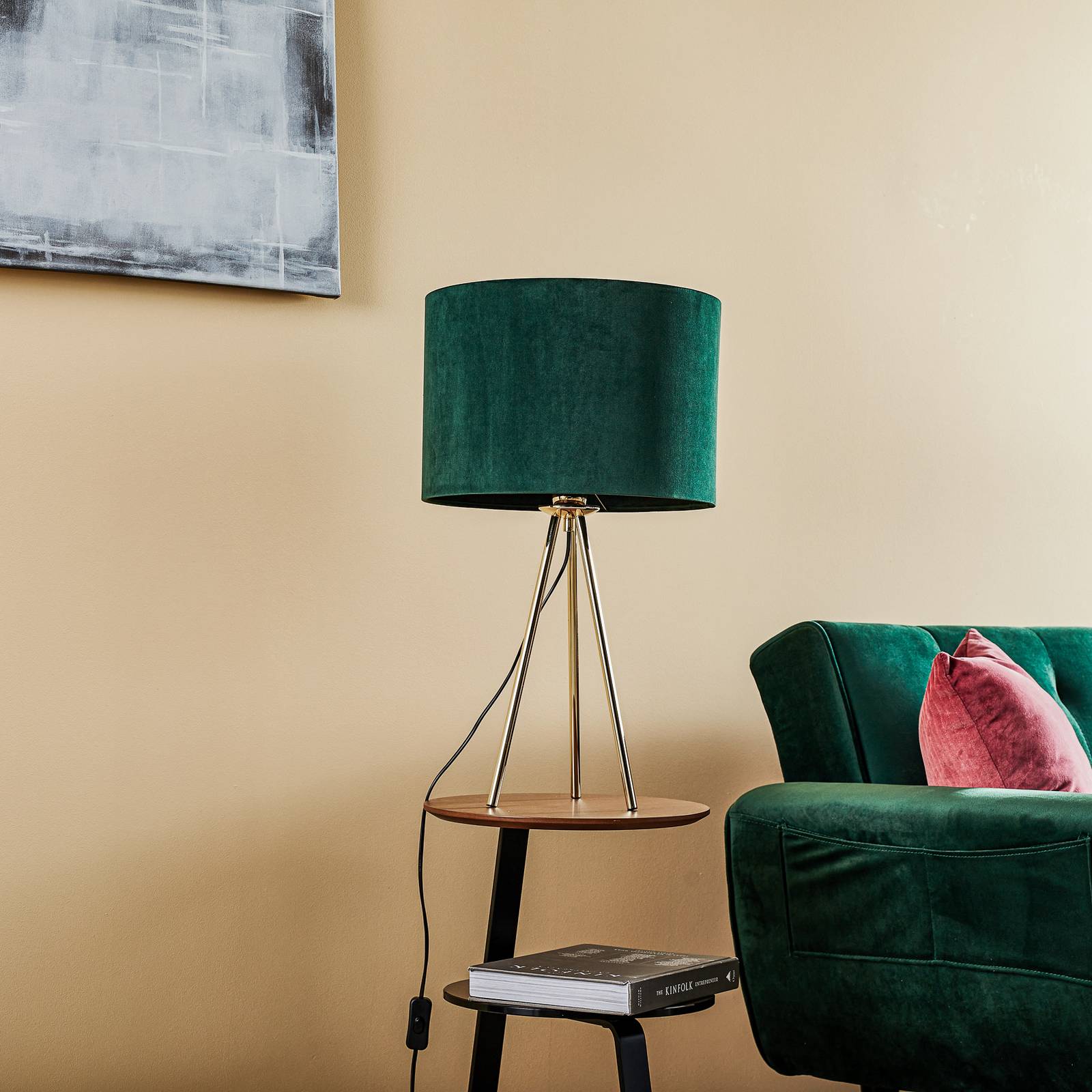 Domiluce Stolní lampa Monaco, trojnožka zlatá, zelený samet, Obývací pokoj / jídelna, samet, ocel, E27, 40W, K: 58cm