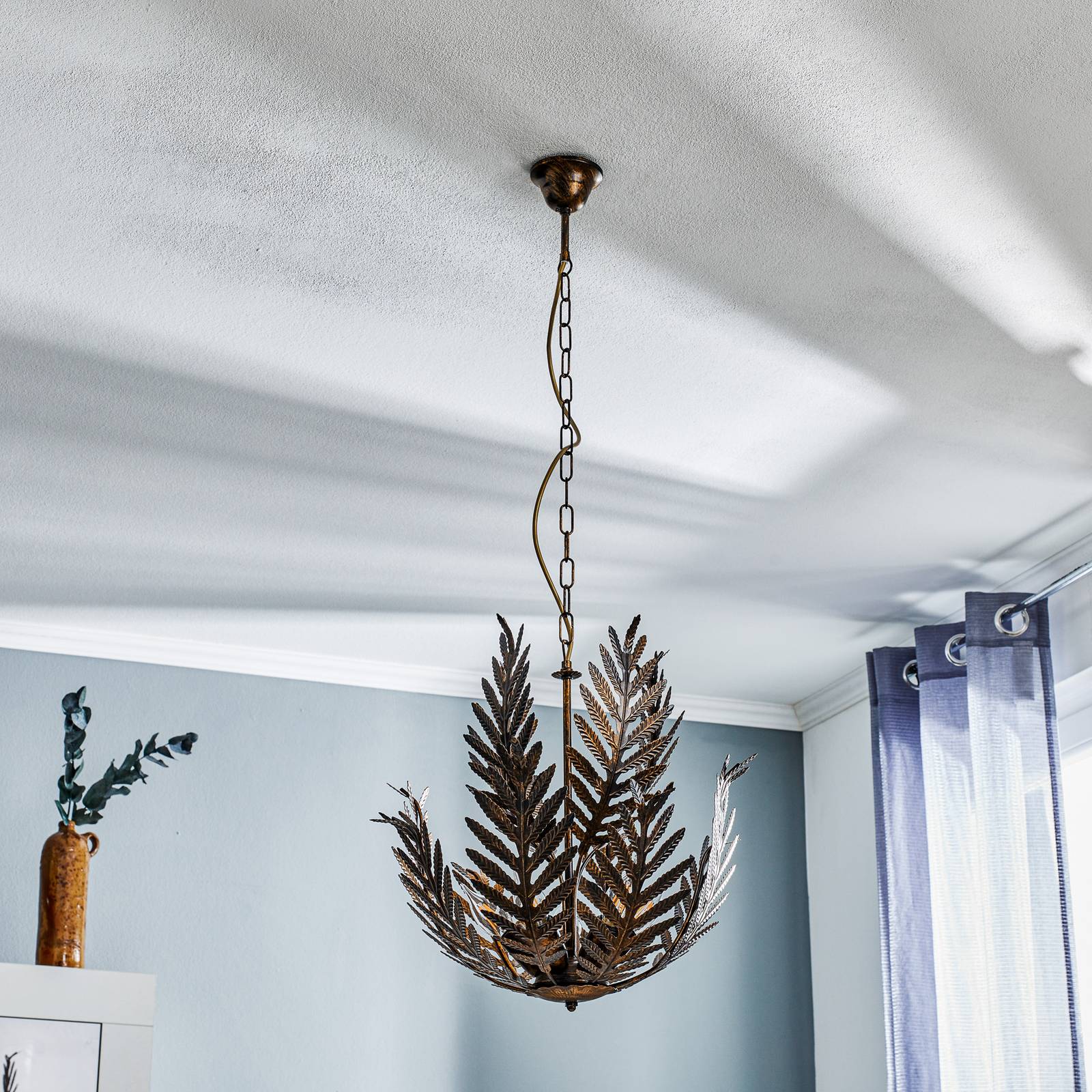 ONLI Závěsné světlo Felce jako kapradí v bronzu, Obývací pokoj / jídelna, železo, E14, 6W