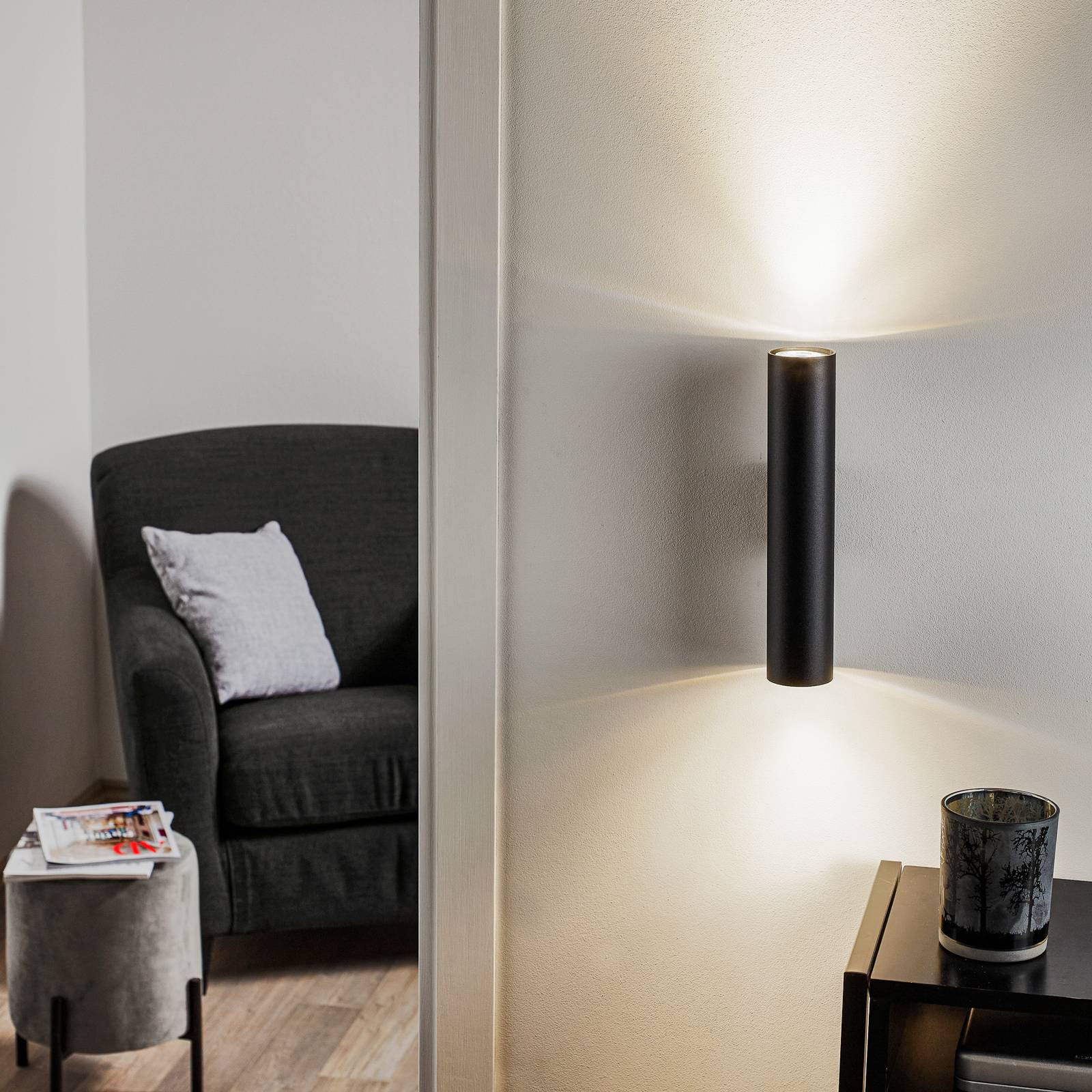 SOLLUX LIGHTING Nástěnné světlo Tube, up/down, černá, Obývací pokoj / jídelna, ocel, GU10, 40W, L: 6 cm, K: 30cm