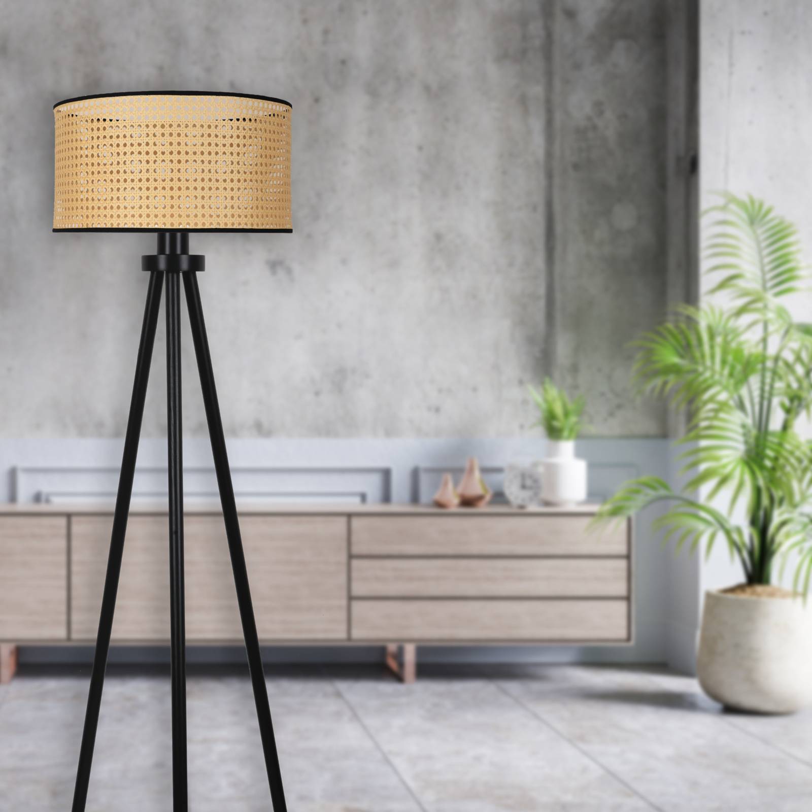 Duolla Stojací lampa Roller, ratan třínožka, béžová/černá, Obývací pokoj / jídelna, ratan, ratan, E27, 15W, K: 144cm