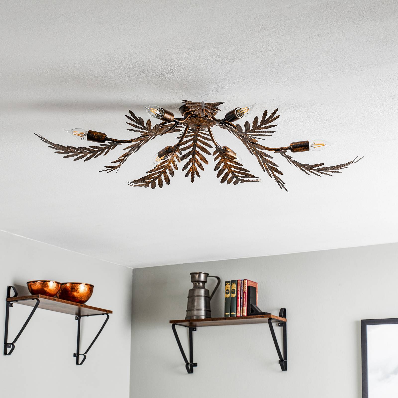 ONLI Stropní světlo Felce jako kapradí bronz 105 x 60cm, Obývací pokoj / jídelna, železo, E14, 6W, P: 105 cm, L: 60 cm, K: 20cm