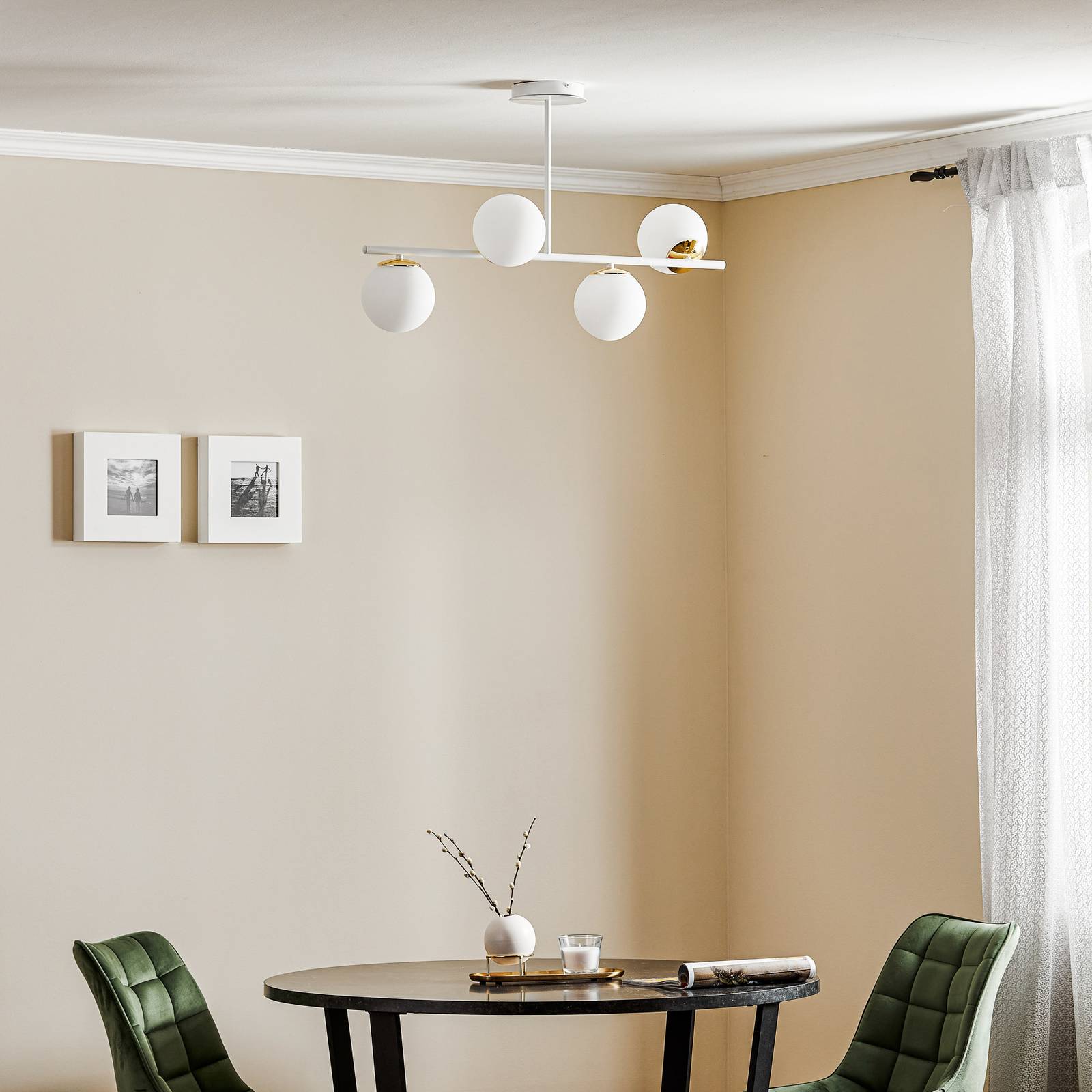 EMIBIG LIGHTING Stropní světlo Kiba, bílá/zlatá, čtyři zdroje, Obývací pokoj / jídelna, ocel práškovaná, sklo, E14, 40W, P: 80 cm, L: 15 cm, K: 51cm