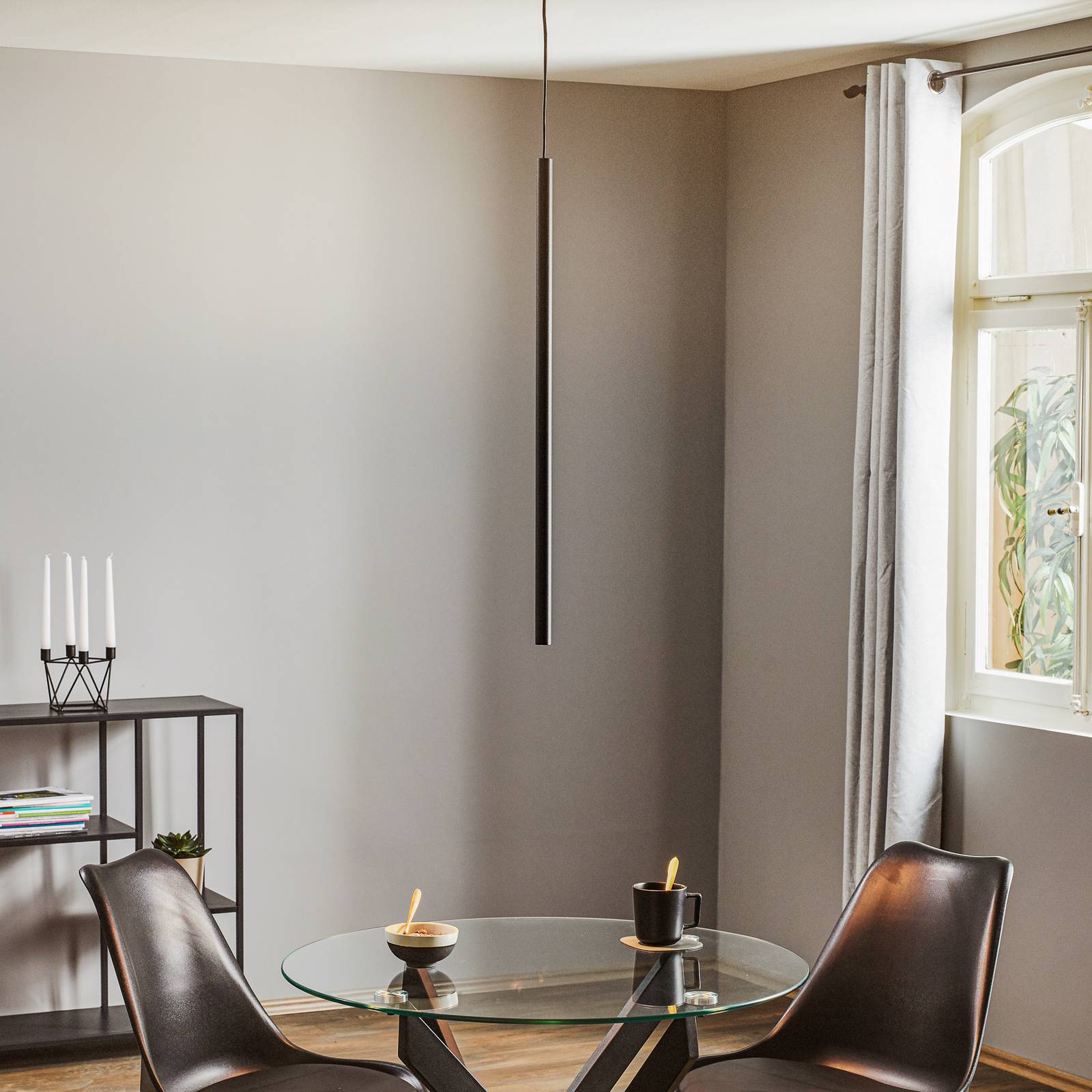 Euluna Závěsná lampa Laser, jednoplamenná, černá, stínidlo 75 cm, Obývací pokoj / jídelna, Ocel, G9, 10W, K: 75cm