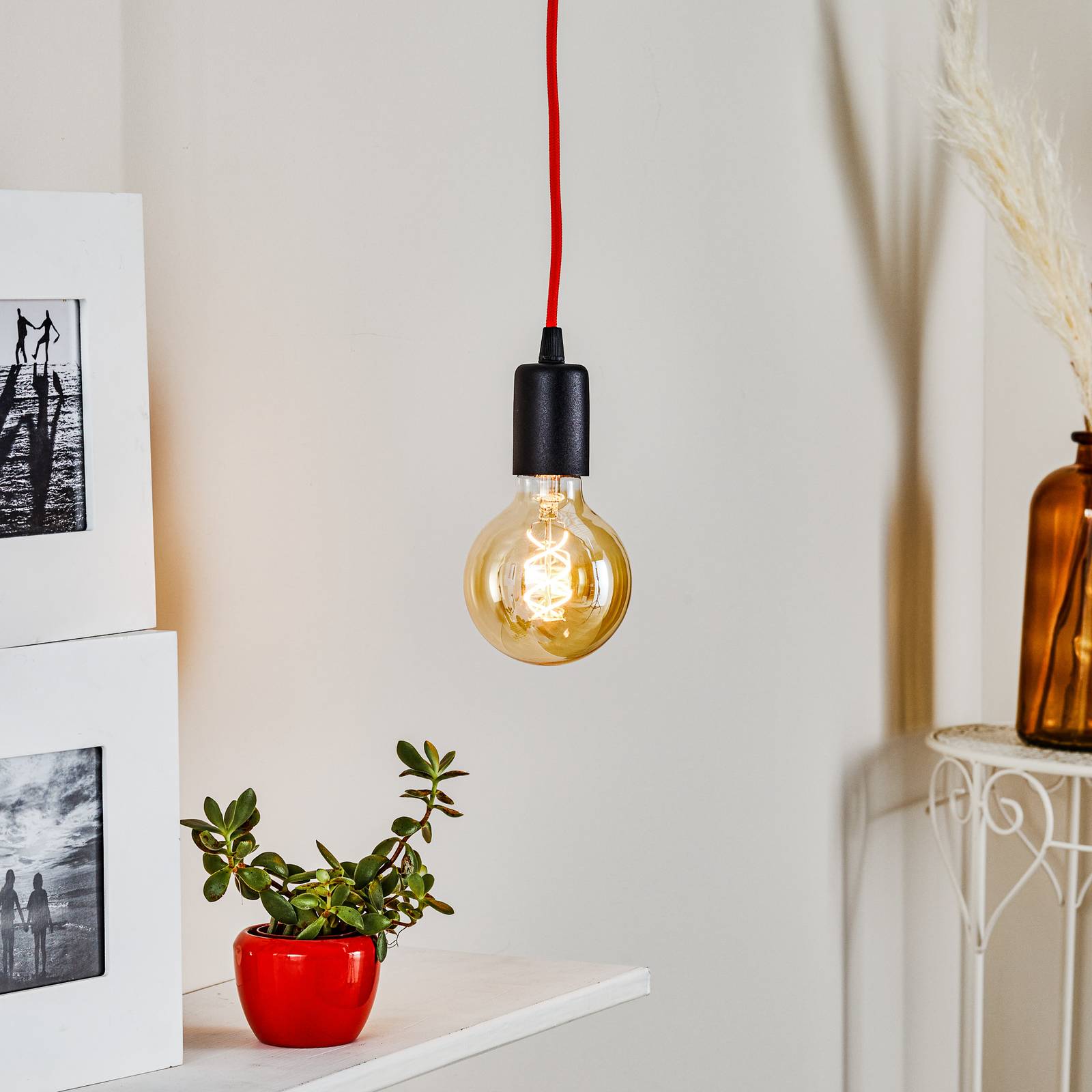 Euluna Závěsné světlo Simple, černá, kabel oranžový, Obývací pokoj / jídelna, ocel, textil, E27, 60W