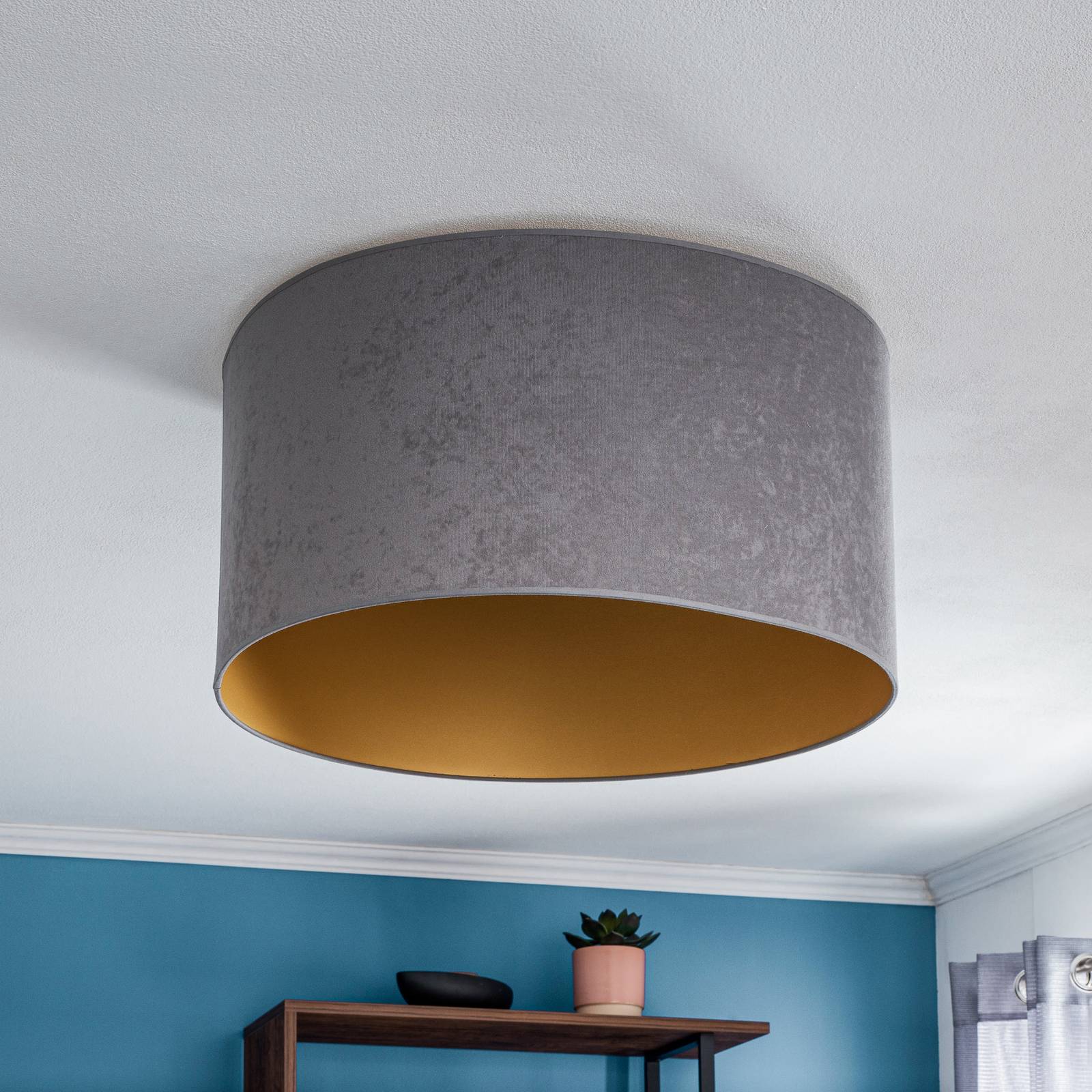 Duolla Stropní světlo Golden Roller Ø 60cm šedá/zlatá, Obývací pokoj / jídelna, samet, E27, 40W, K: 30cm