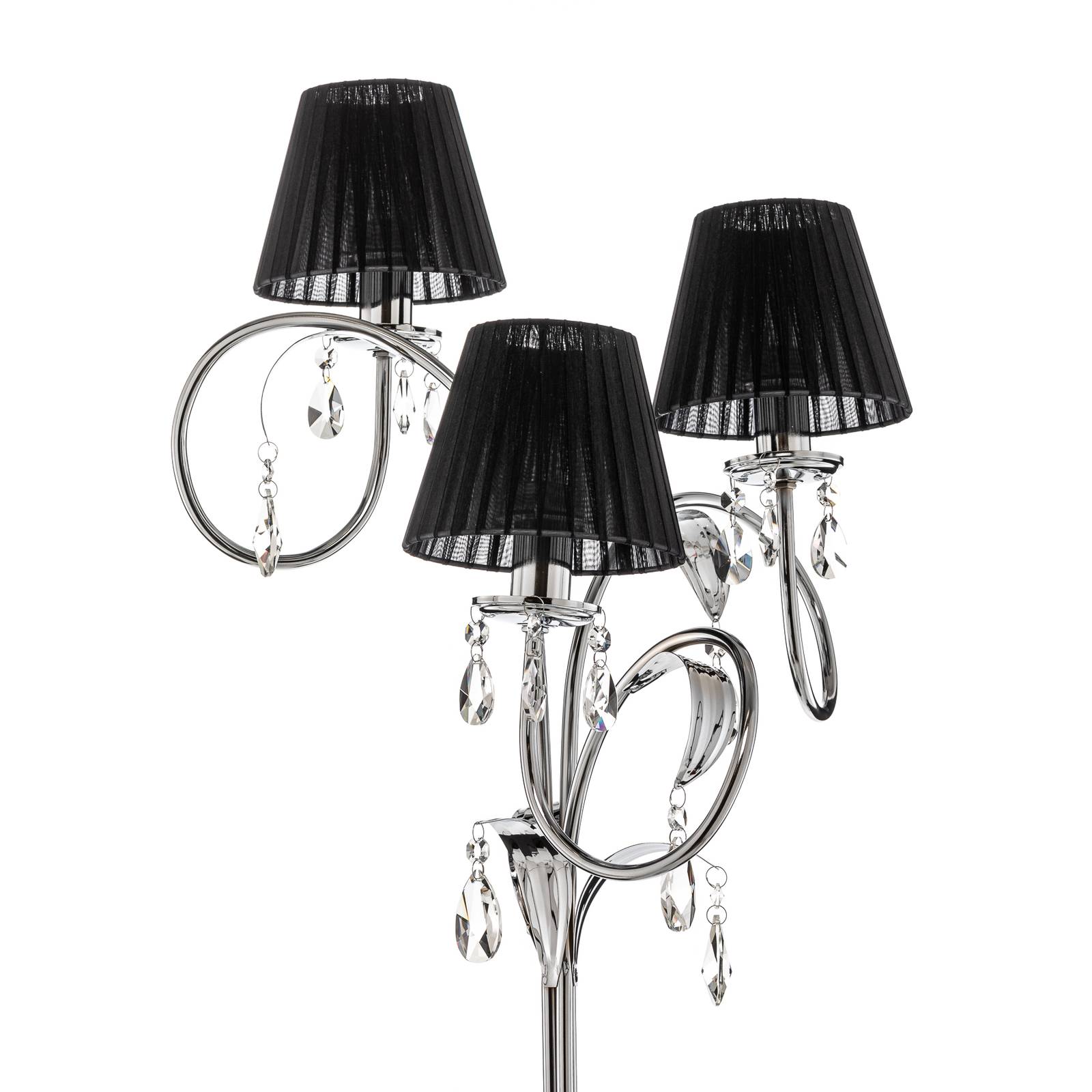 ONLI Stojací lampa Jacqueline, 3 zdroje, černý, Obývací pokoj / jídelna, železo, tkaniny, křišťálové sklo K9, E14, 6W, K: 195cm