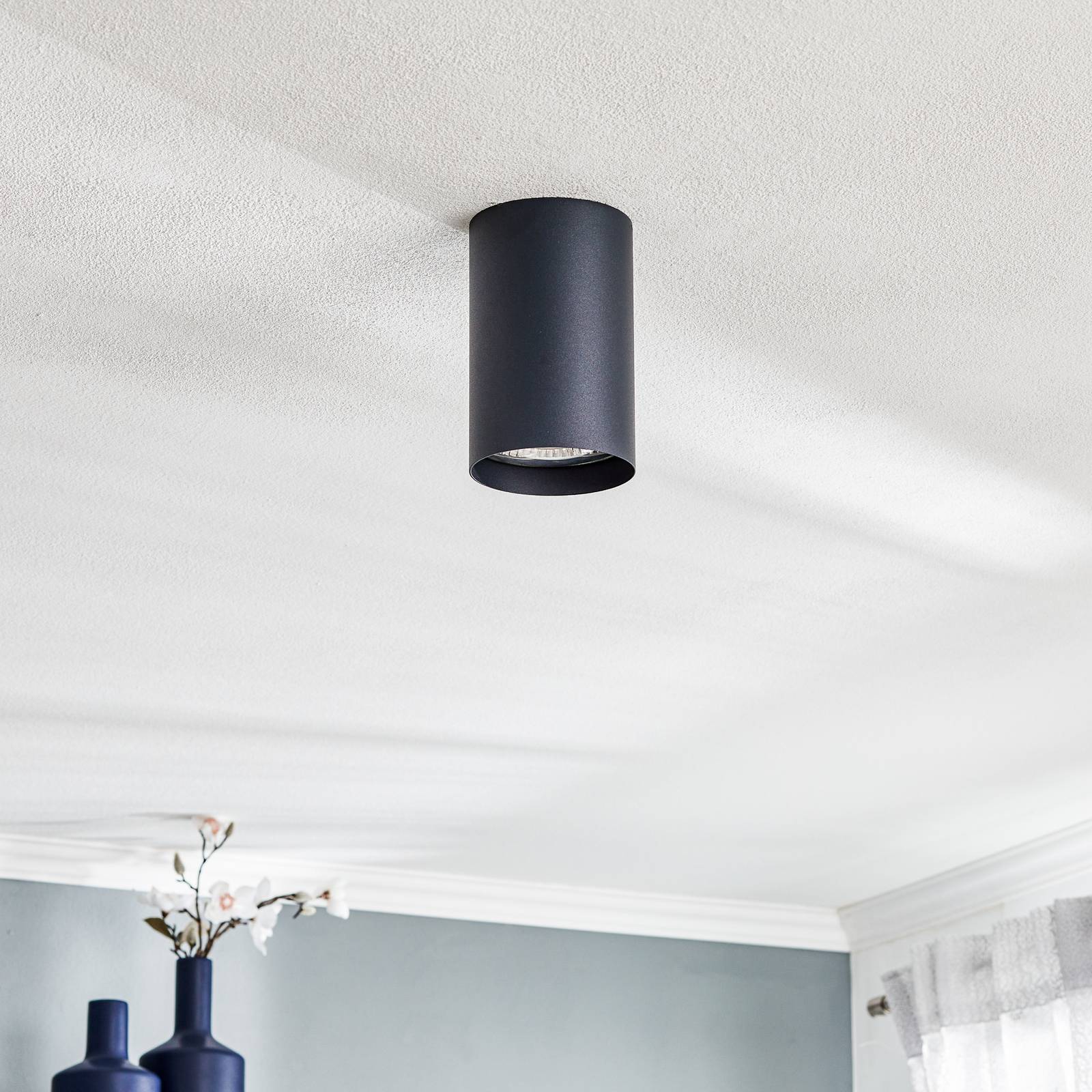 Euluna Stropní reflektor Bit M ve tvaru válce, grafitový, Obývací pokoj / jídelna, Kov, GU10, 75W, K: 18cm