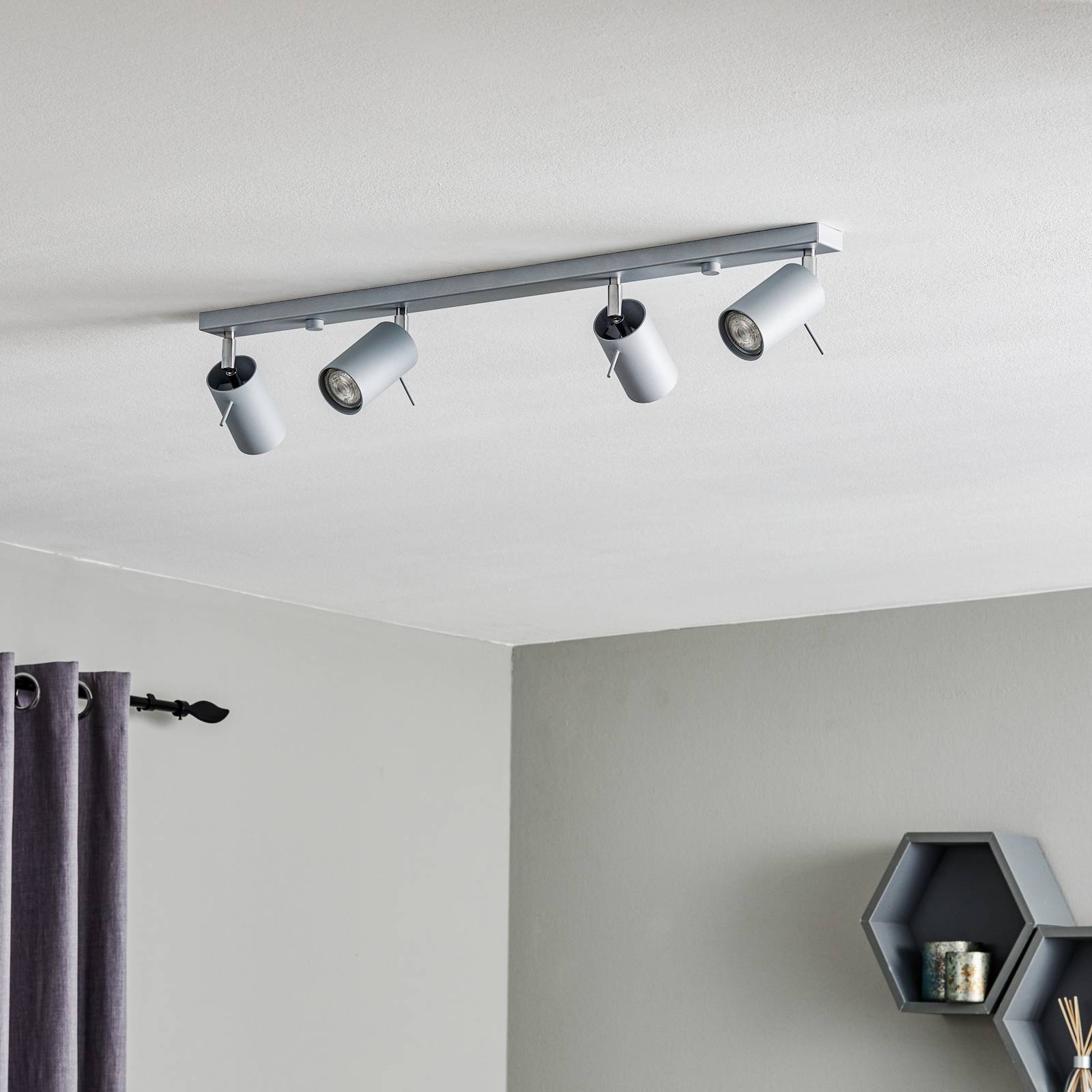 SOLLUX LIGHTING Stropní reflektor Round šedý čtyři zdroje lineární, Obývací pokoj / jídelna, ocel, GU10, 40W, P: 80 cm, L: 8 cm, K: 15cm
