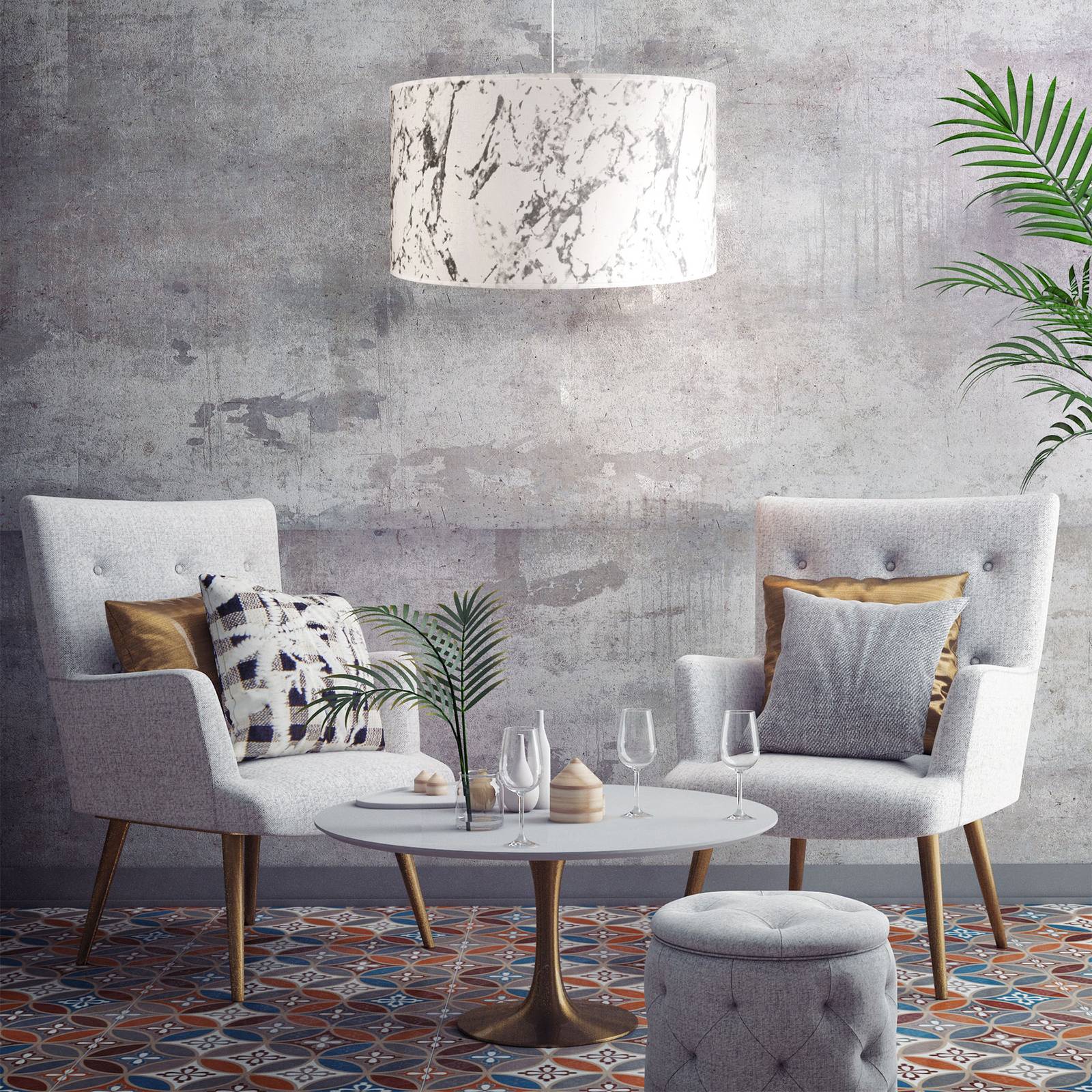 Duolla Závěsné světlo Marble, bílá mramorovaná, Obývací pokoj / jídelna, textilie, PVC, E27, 40W, K: 25cm