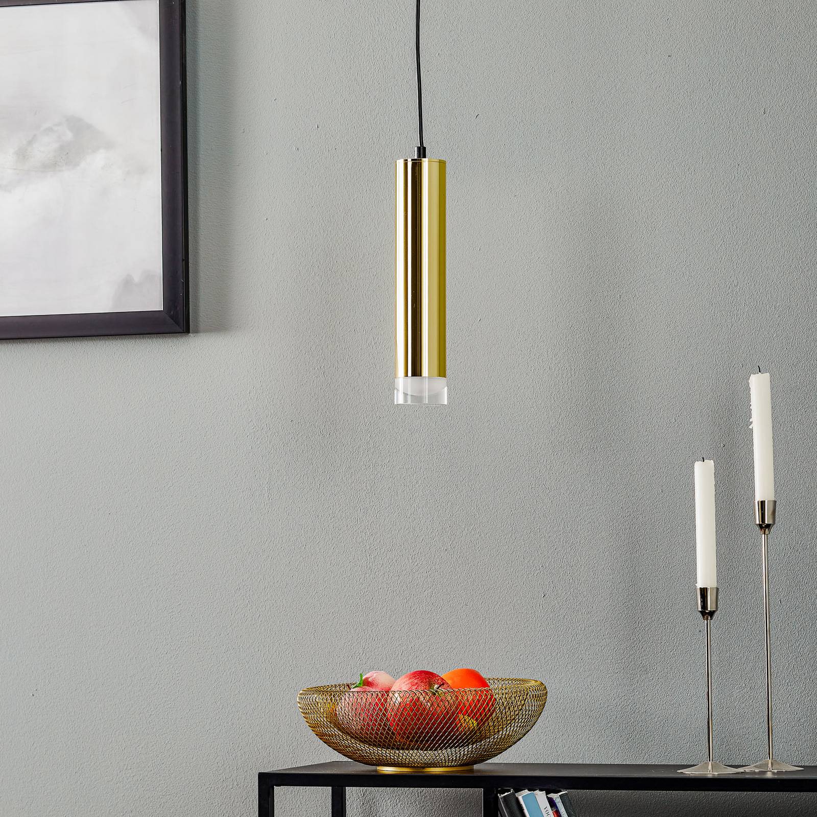 Lamkur Závěsné světlo Shine, jeden zdroj, zlatá, Obývací pokoj / jídelna, ocel, E27, 60W