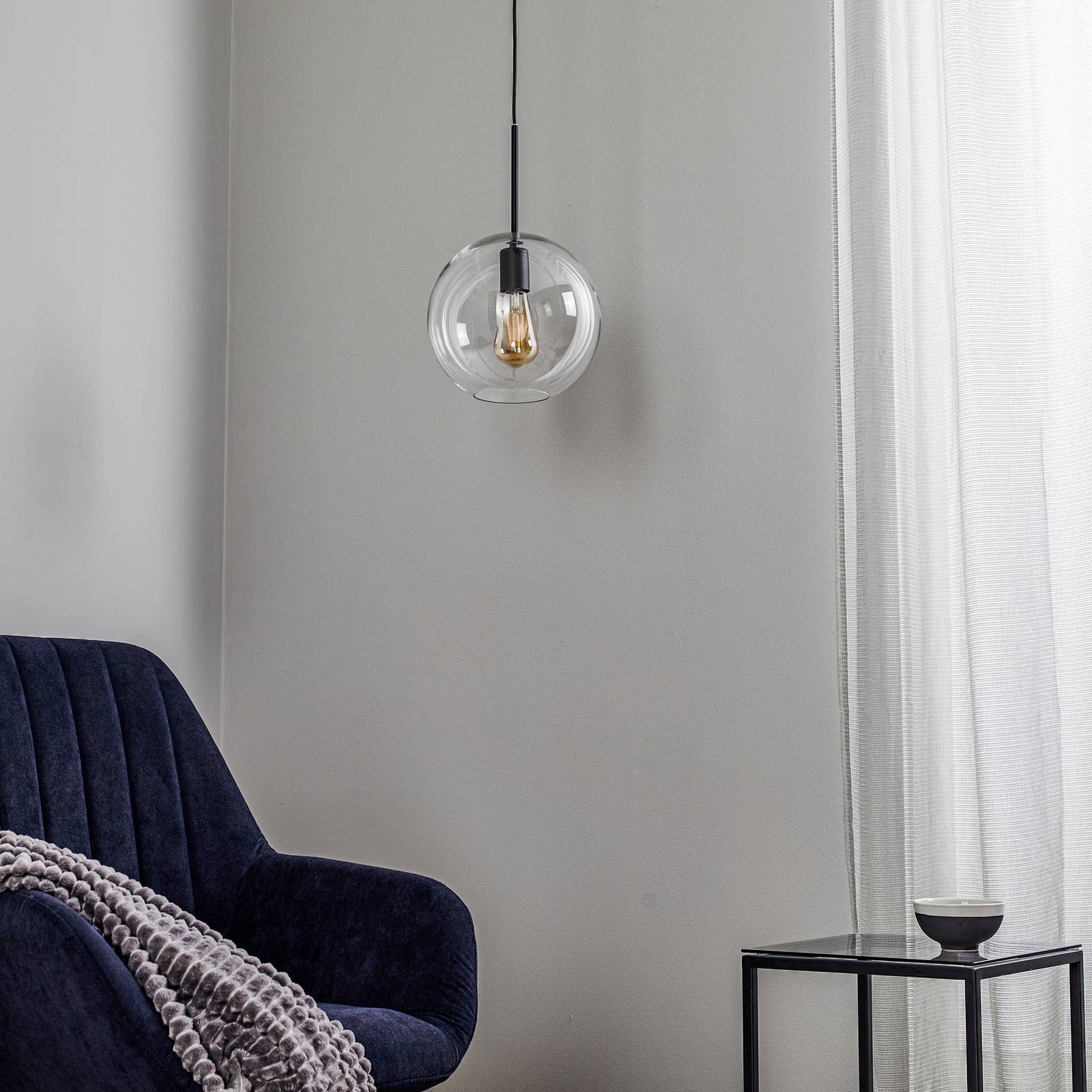 Euluna Závěsné světlo Sphere L se skleněným stínidlem, Obývací pokoj / jídelna, Sklo, ocel, E27, 40W, K: 24.5cm