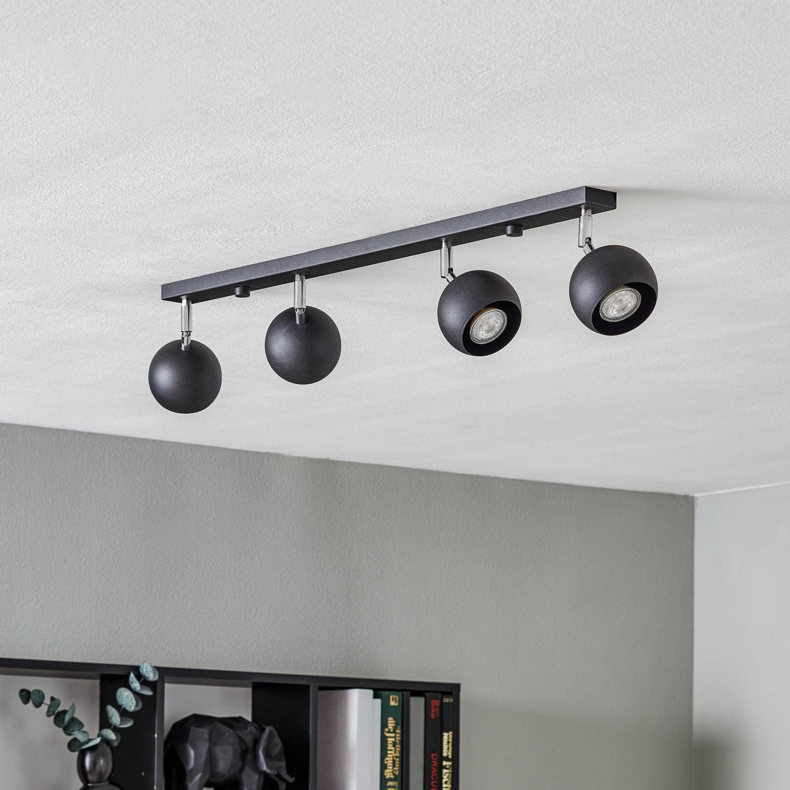 SOLLUX LIGHTING Stropní reflektor Flame, černý, čtyři zdroje, Obývací pokoj / jídelna, ocel, GU10, 40W, P: 80 cm, L: 10 cm, K: 15cm