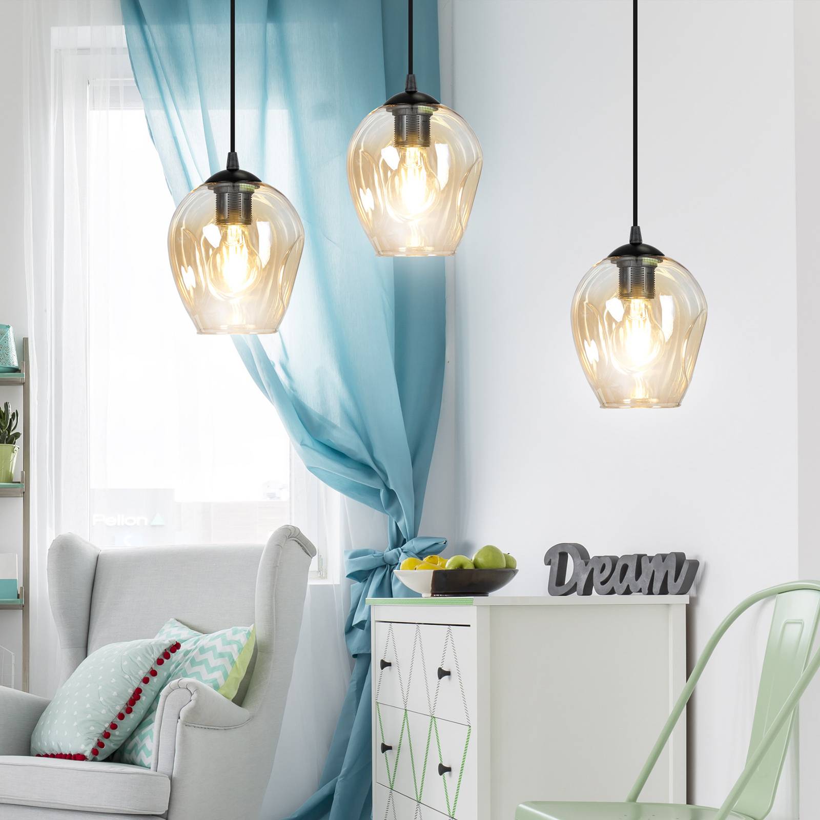 EMIBIG LIGHTING Závěsné svítidlo Starla, decentrální, třísvítidlové, jantarové barvy, Obývací pokoj / jídelna, Kov, sklo, E27, 60W