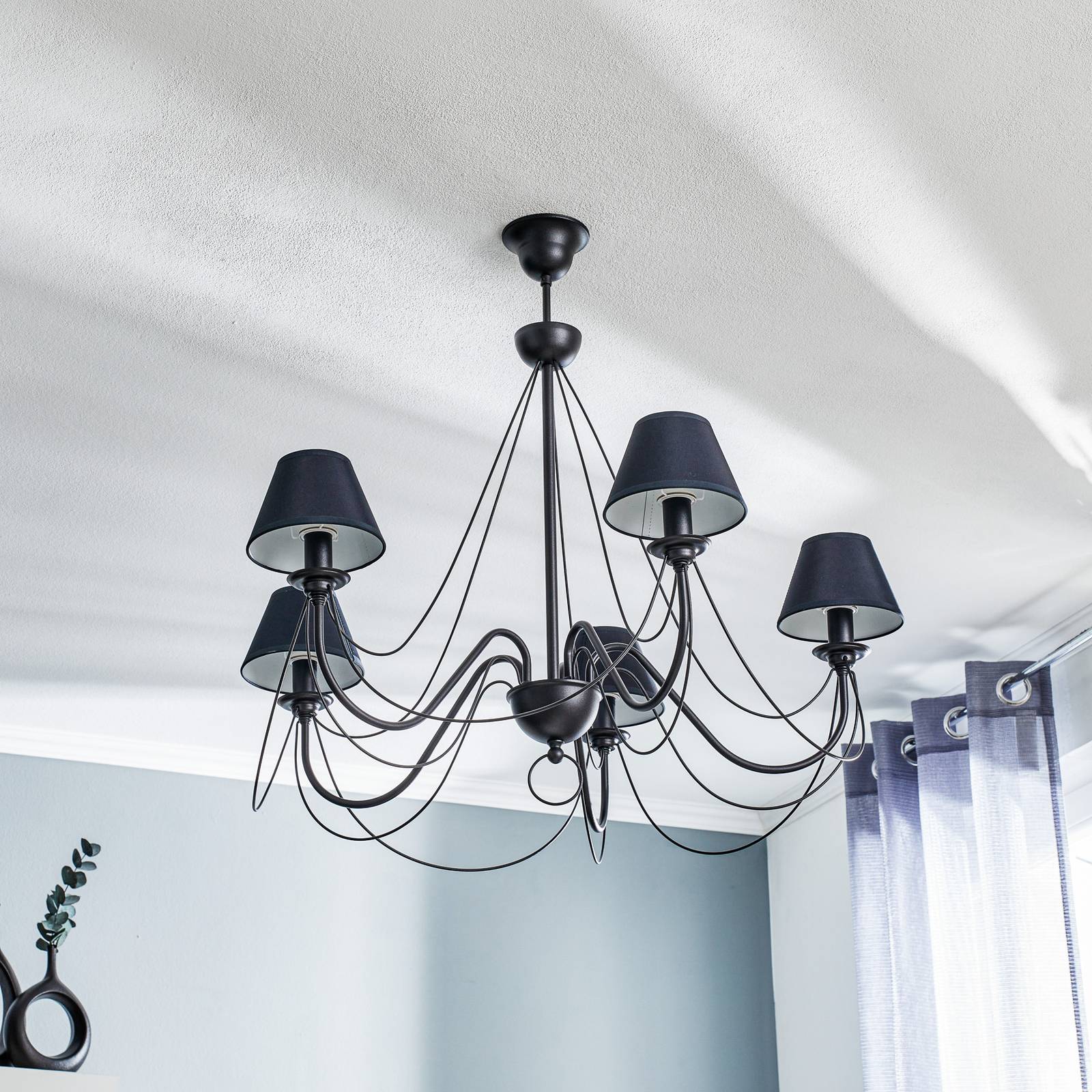 Euluna Lustr Bona, pět zdrojů, černá, Obývací pokoj / jídelna, kov, textil, E14, 40W