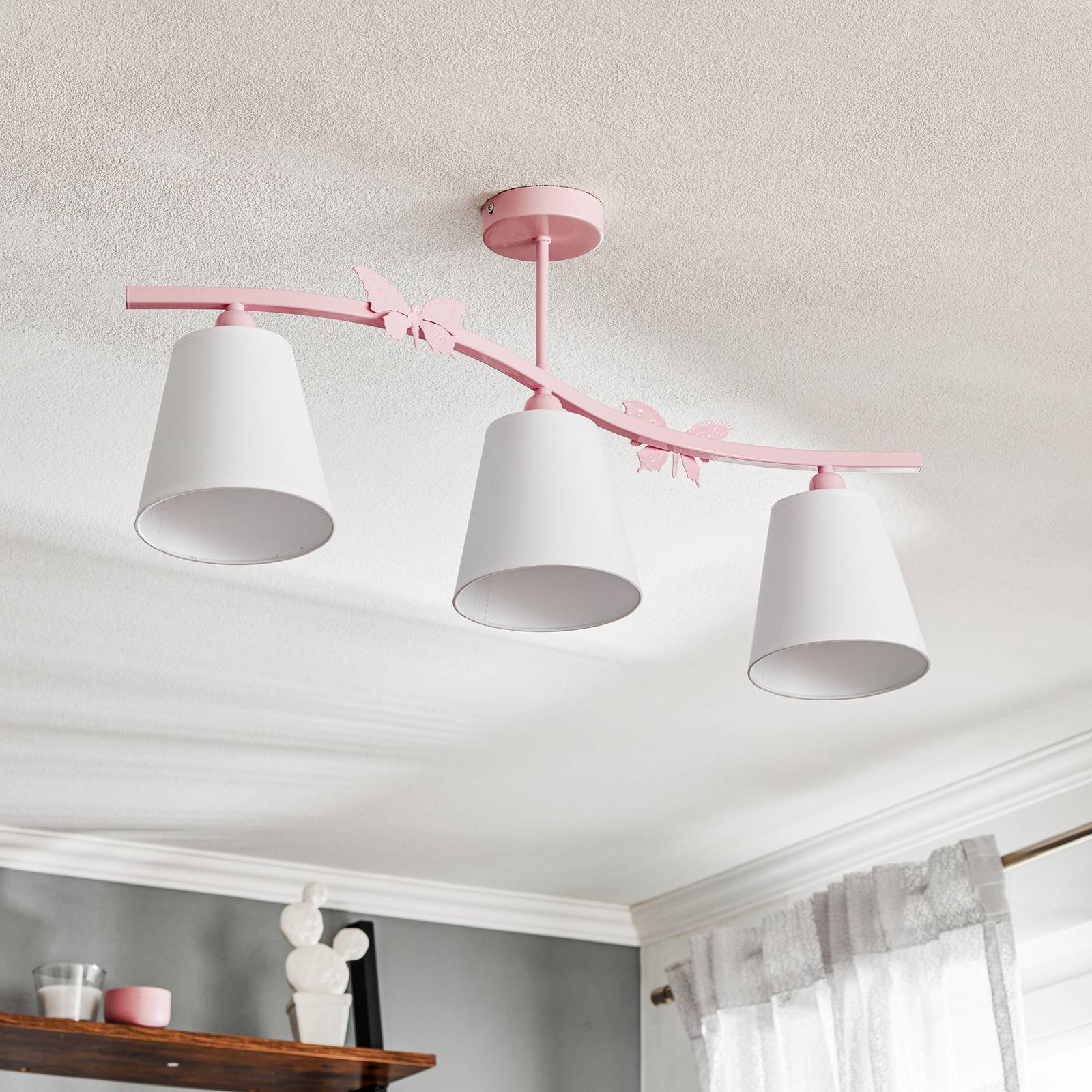 Eko-Light Stropní světlo Alice růžová, 3 bílá stínidla, Obývací pokoj / jídelna, textil, ocel, E14, 40W, P: 75 cm, L: 15 cm, K: 40cm
